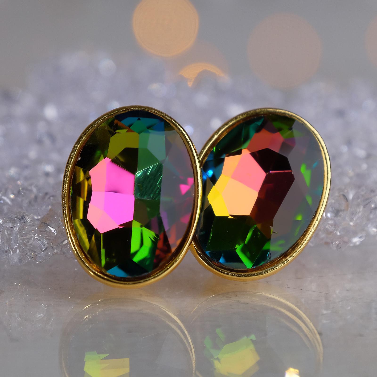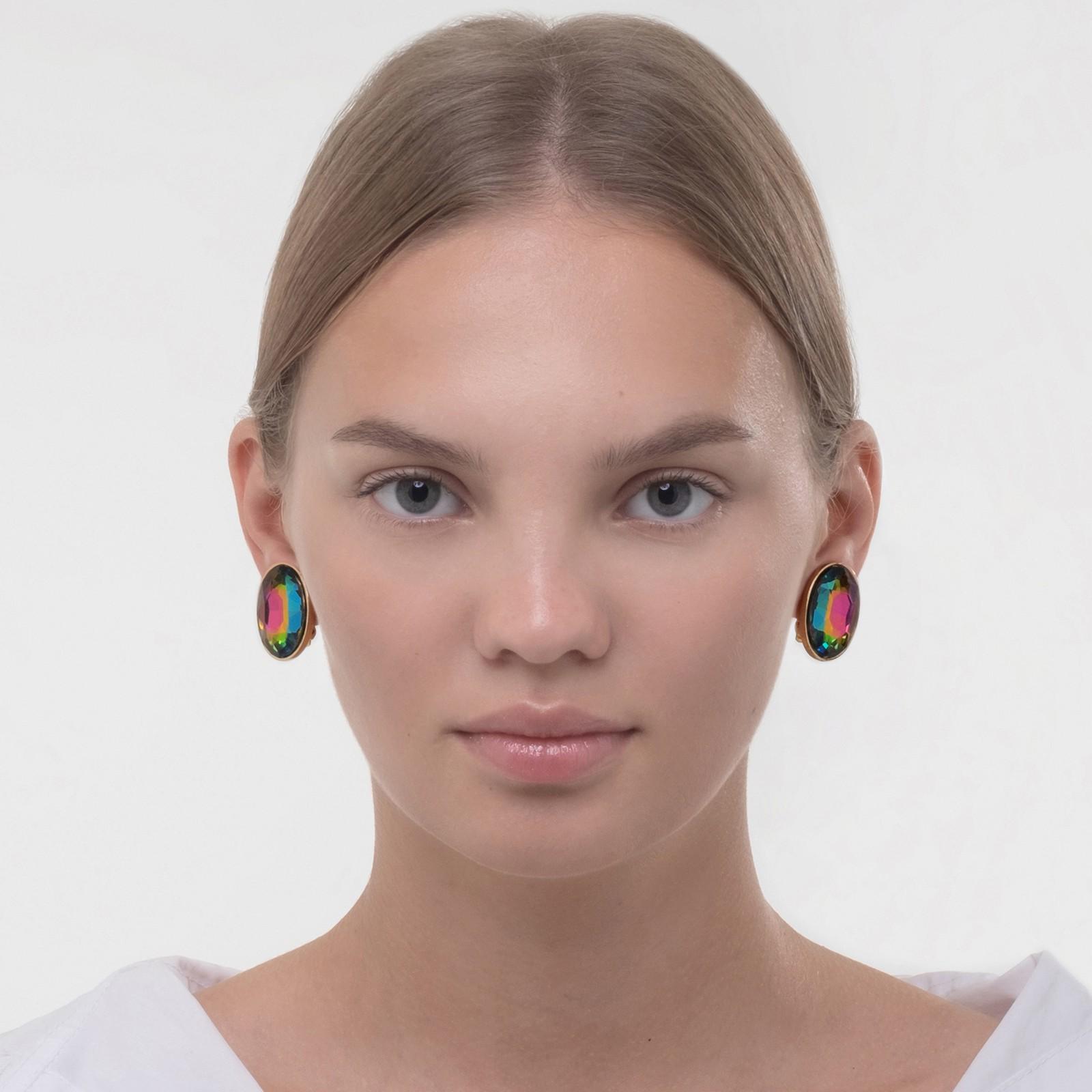 Клипсы "Вечеринка" овалы, цвет бензиновый в золоте