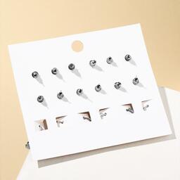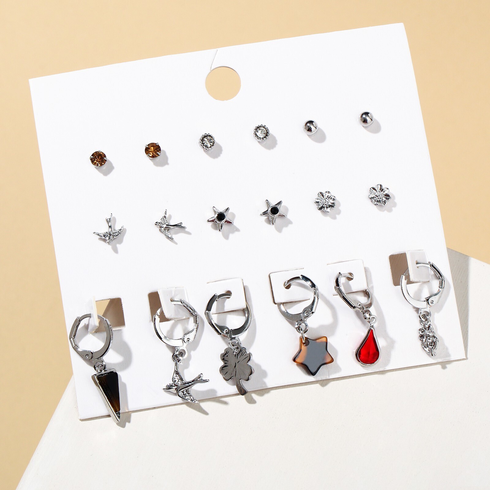 Набор серьги 9 пар "Цацки" клевер, звезда, ласточки, цветные в серебре