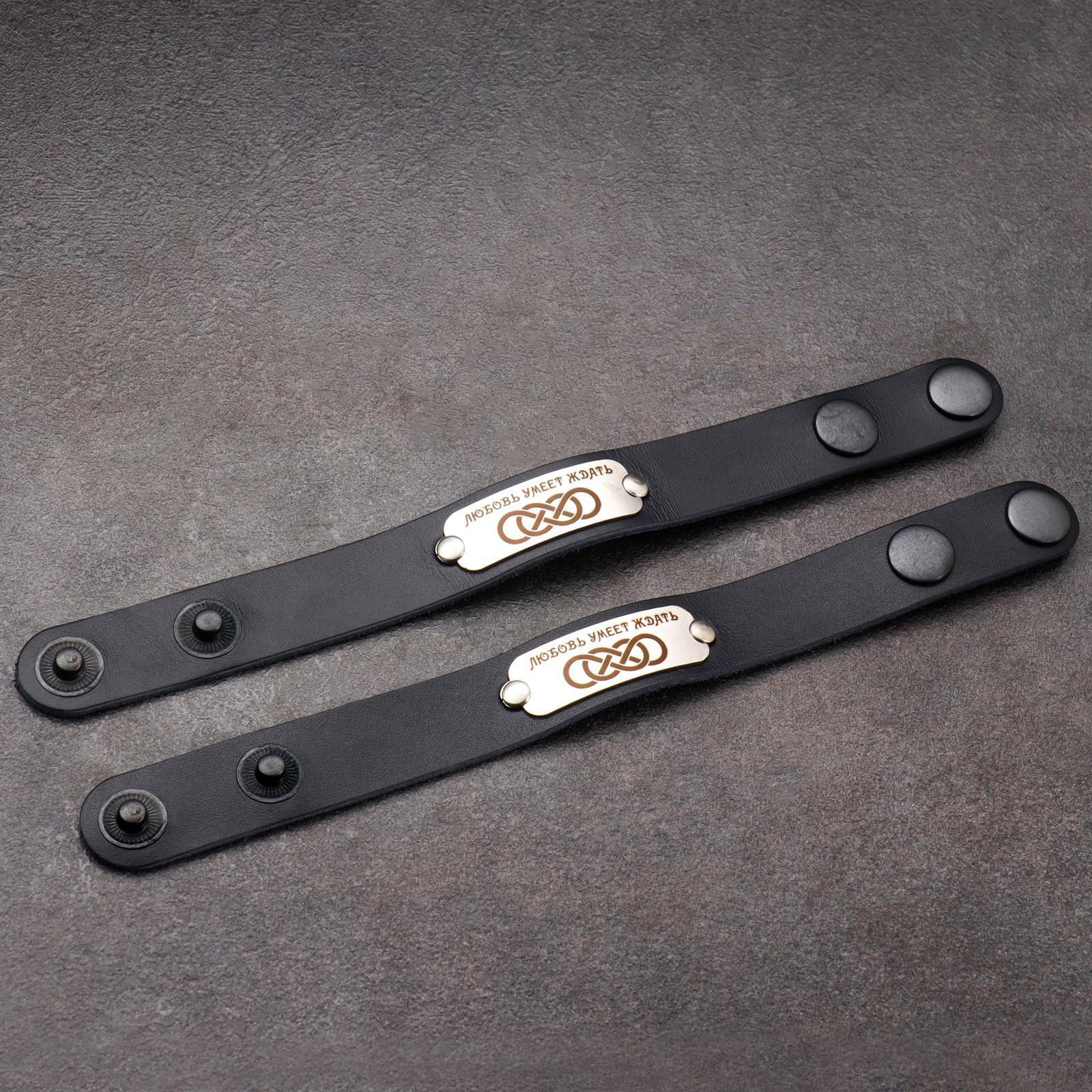 Парные браслеты "Любовь умеет ждать", натуральная кожа, сталь