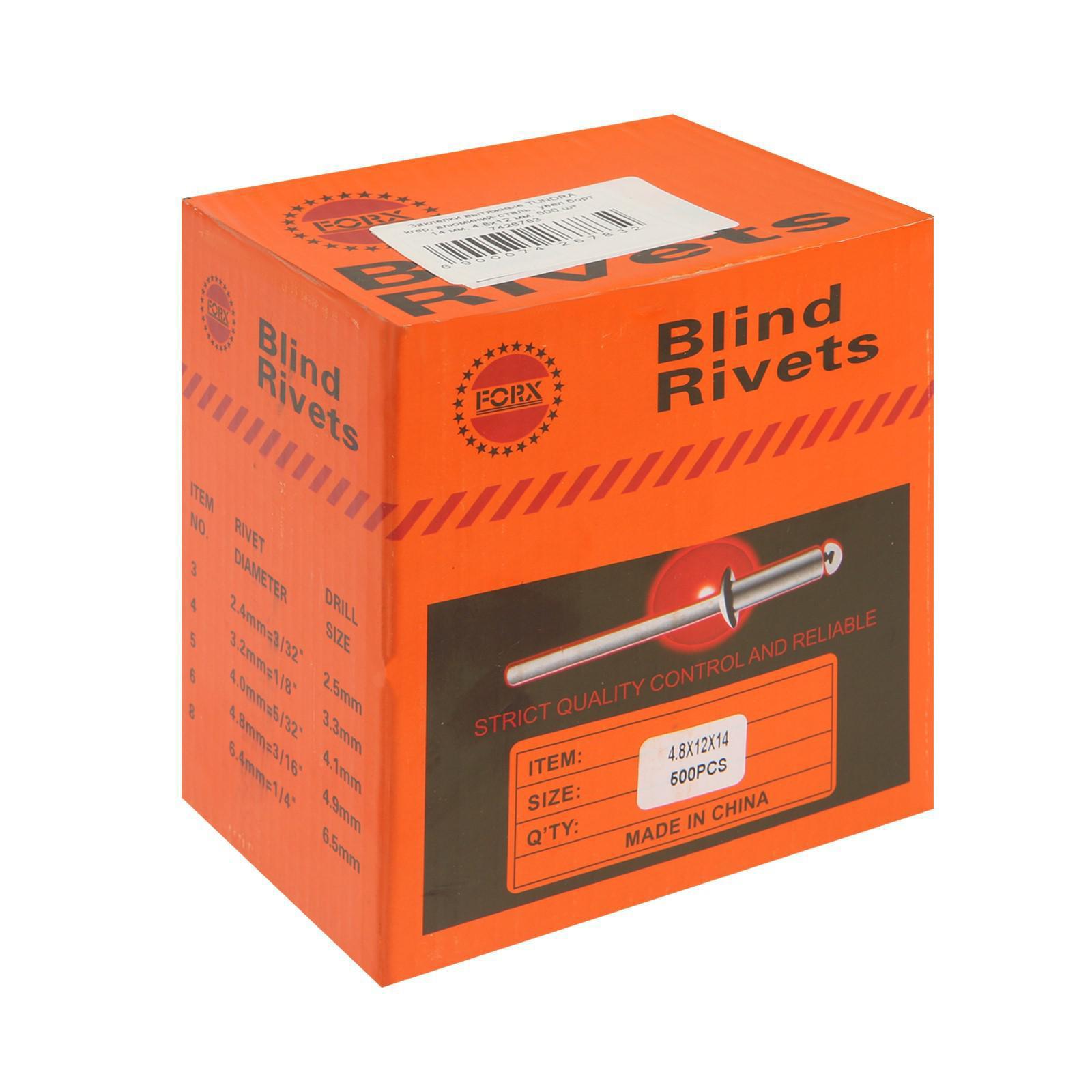 Заклепки вытяжные ТУНДРА krep, алюминий-сталь, увел.борт 14 мм, 4.8х12 мм, 500 шт.