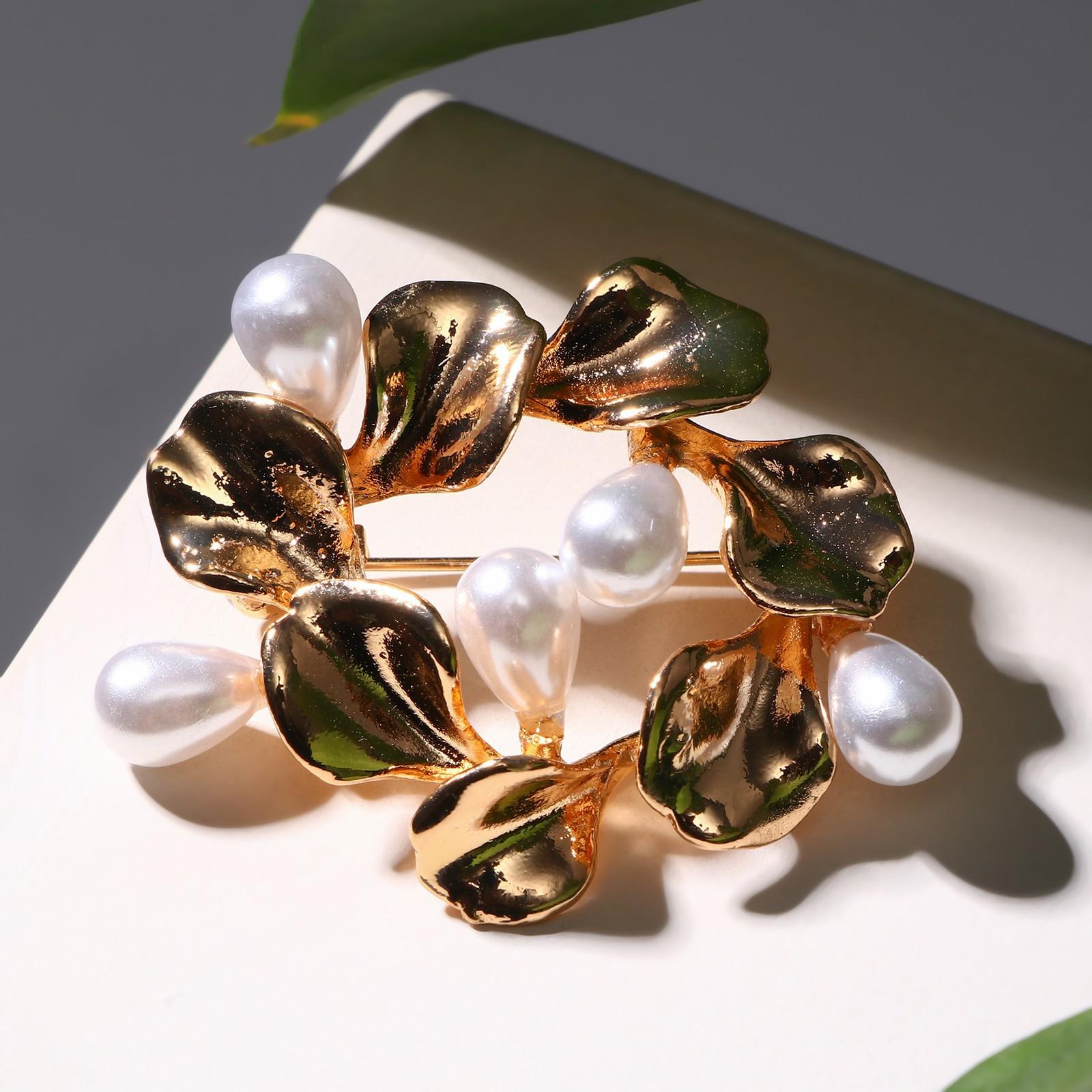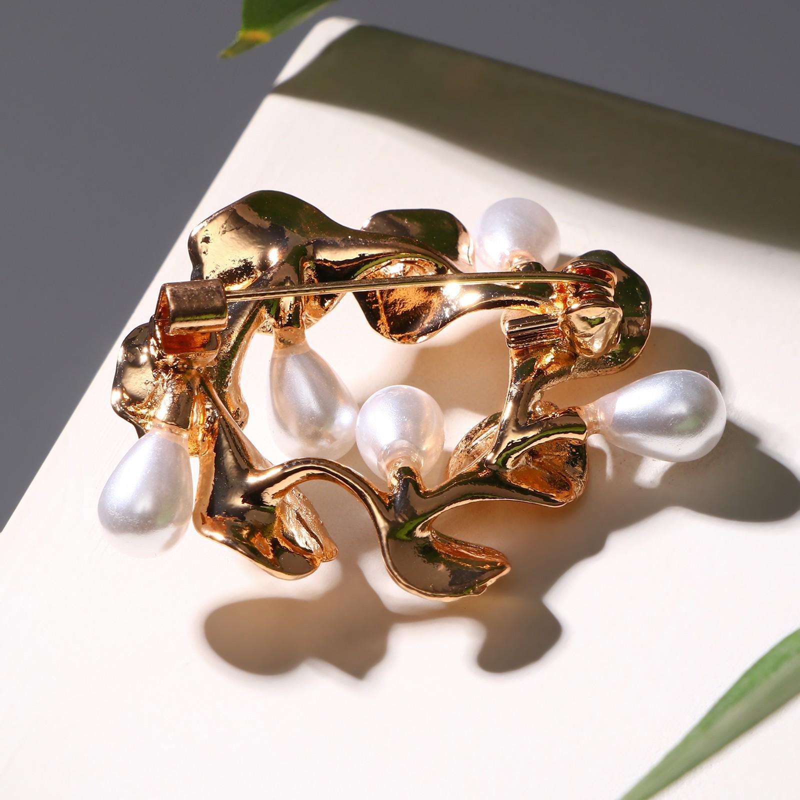 Брошь "Лепестки и бусины", цвет белый в золоте