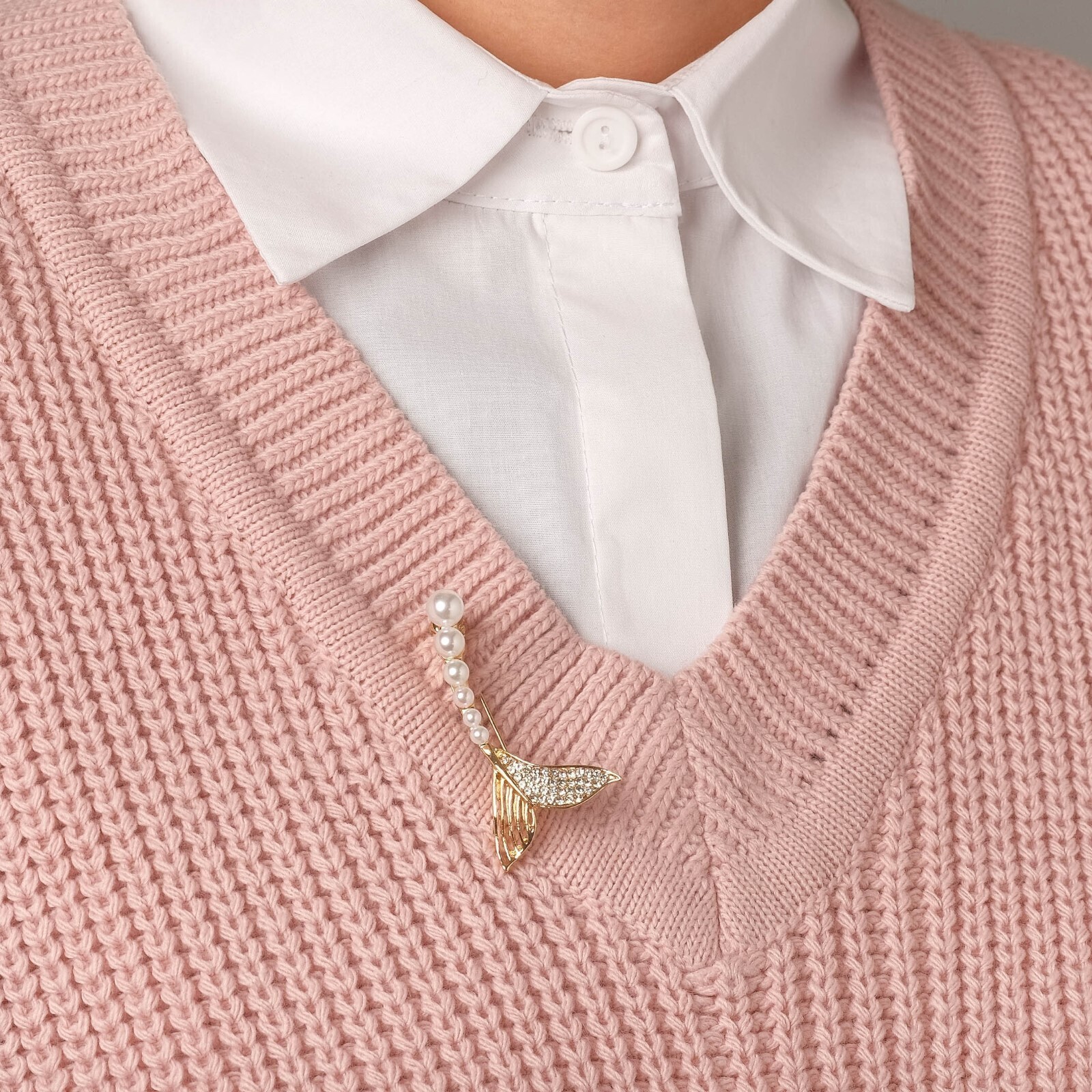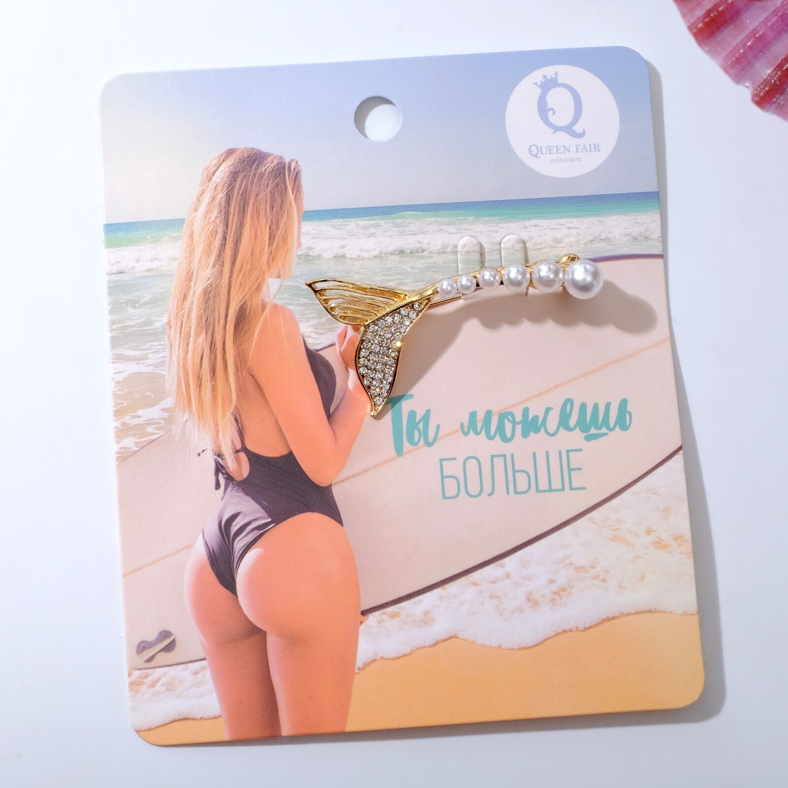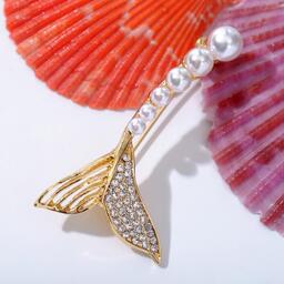 Брошь "Хвост Русалки", цвет белый в золоте