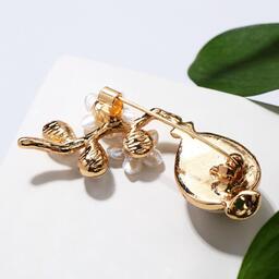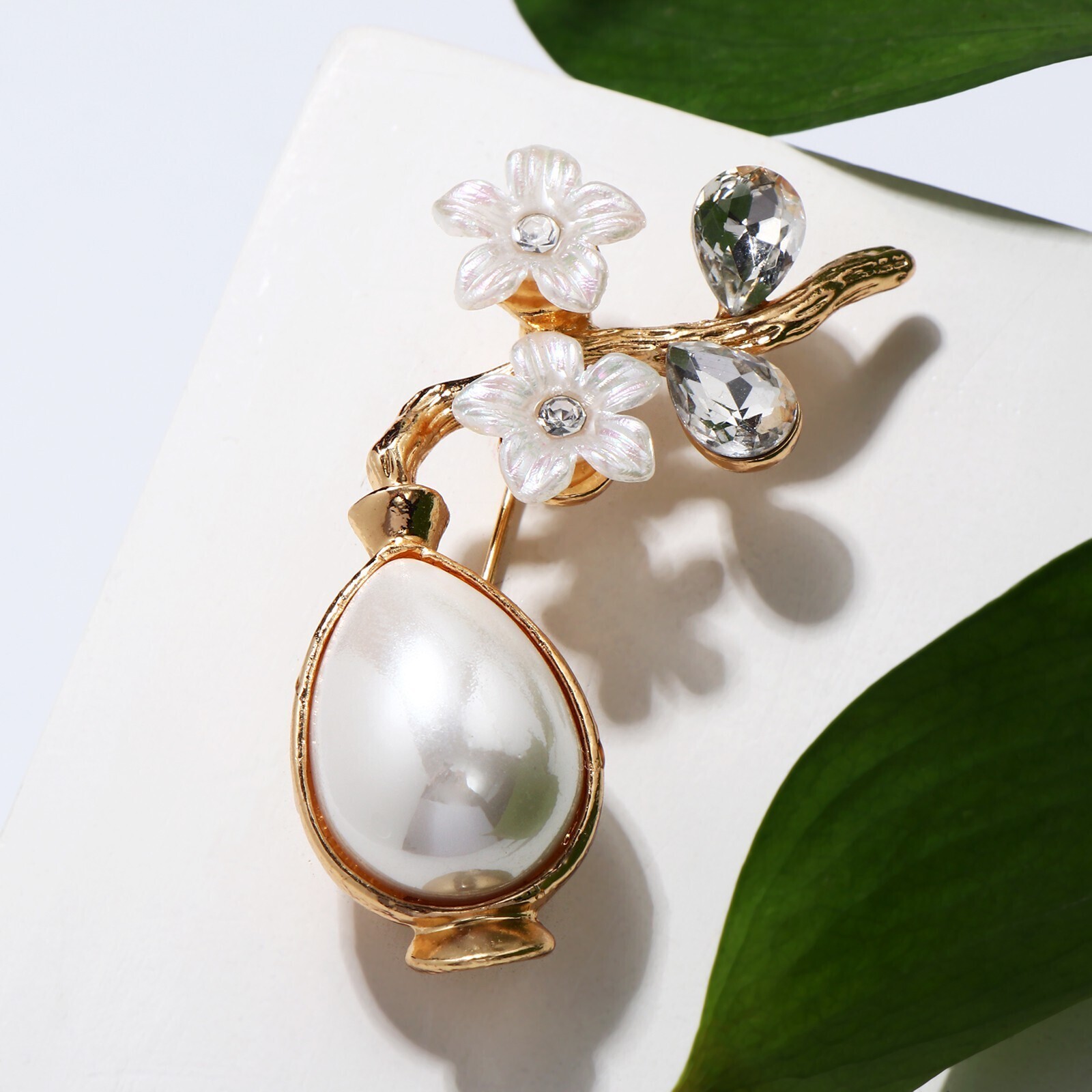 Брошь "Жемчужная ваза" с цветами, цвет радужно-белый в золоте