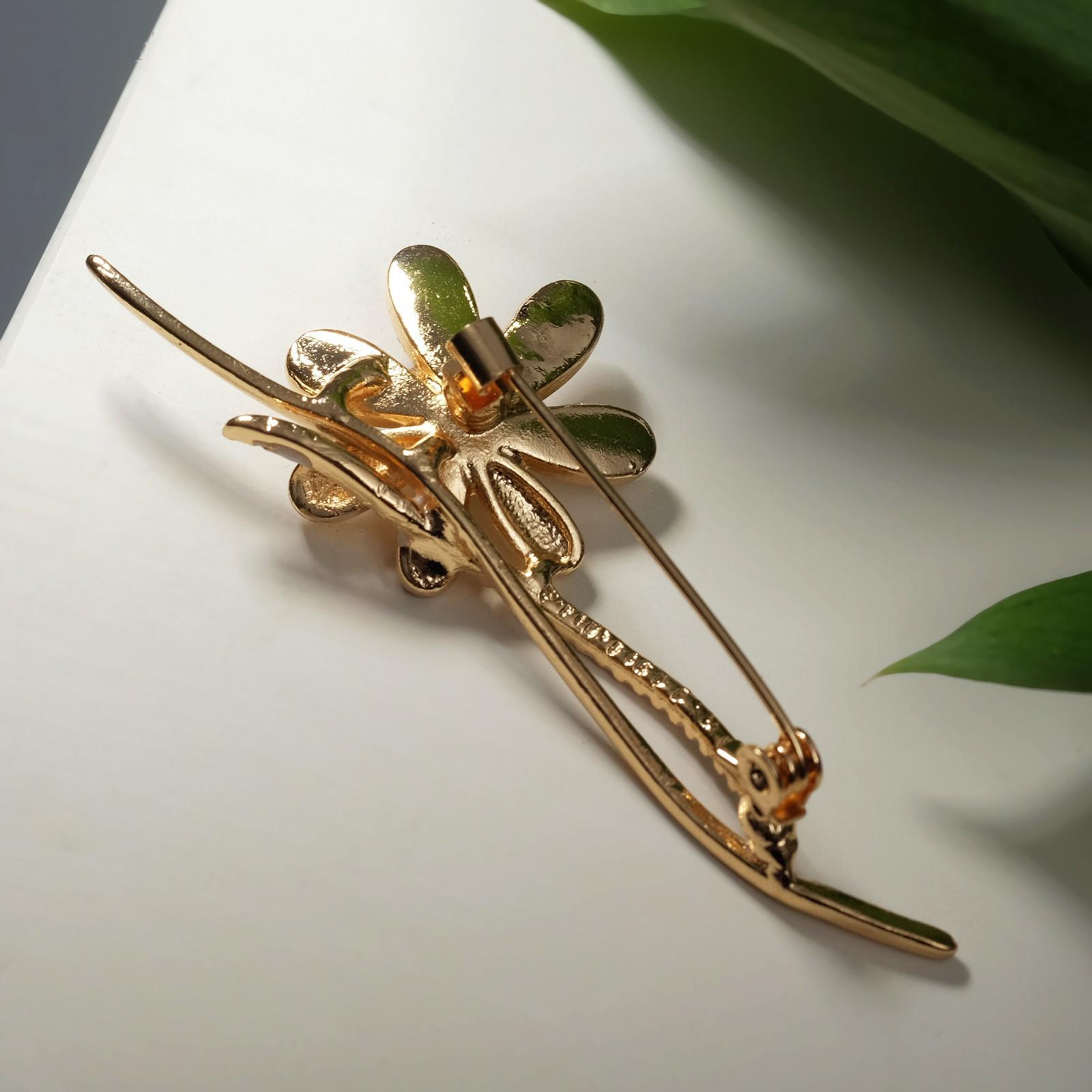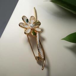 Брошь "Цветок" с веточкой, цвет белый в золоте