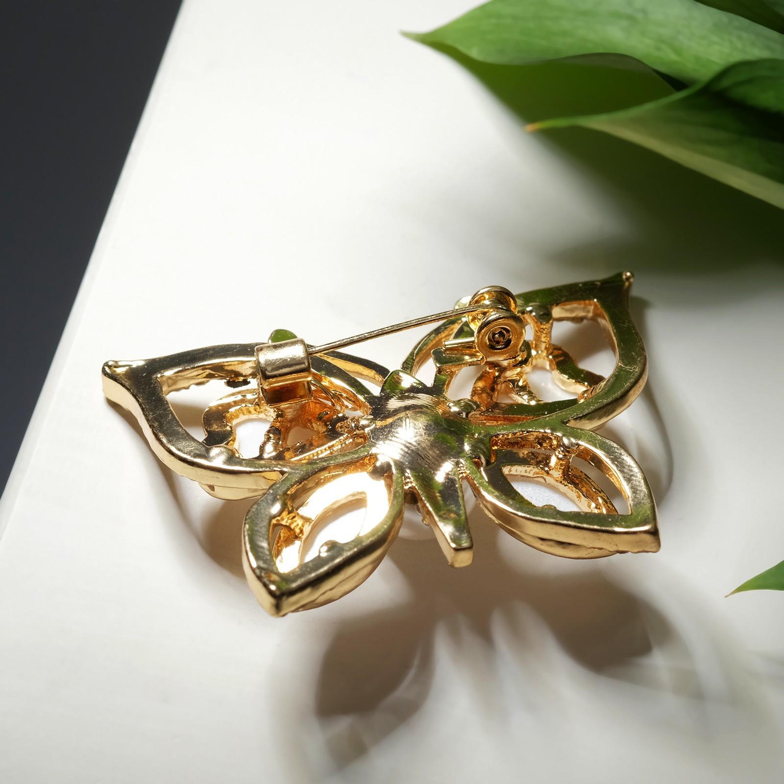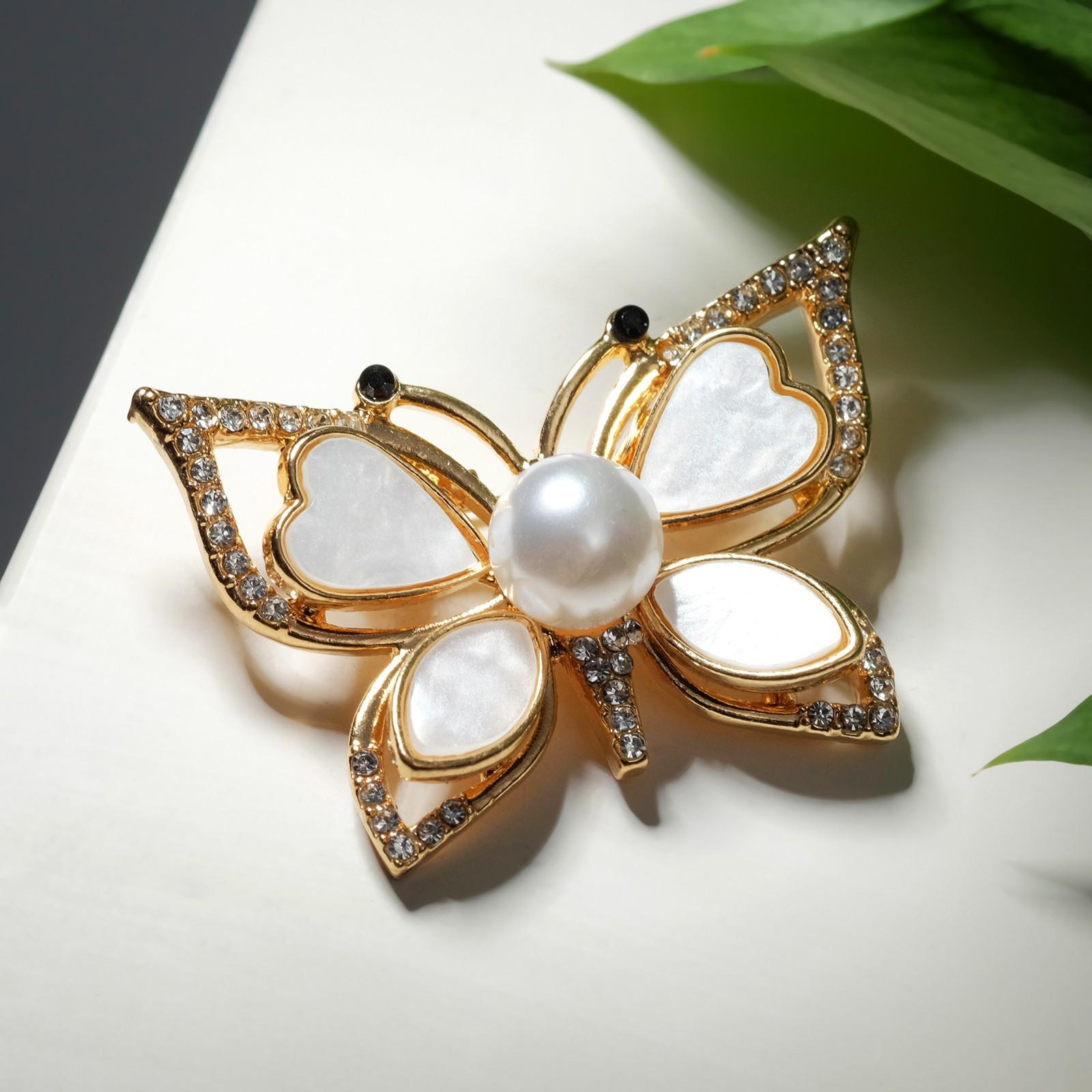 Брошь "Бабочка" с сердечками, цвет белый в золоте