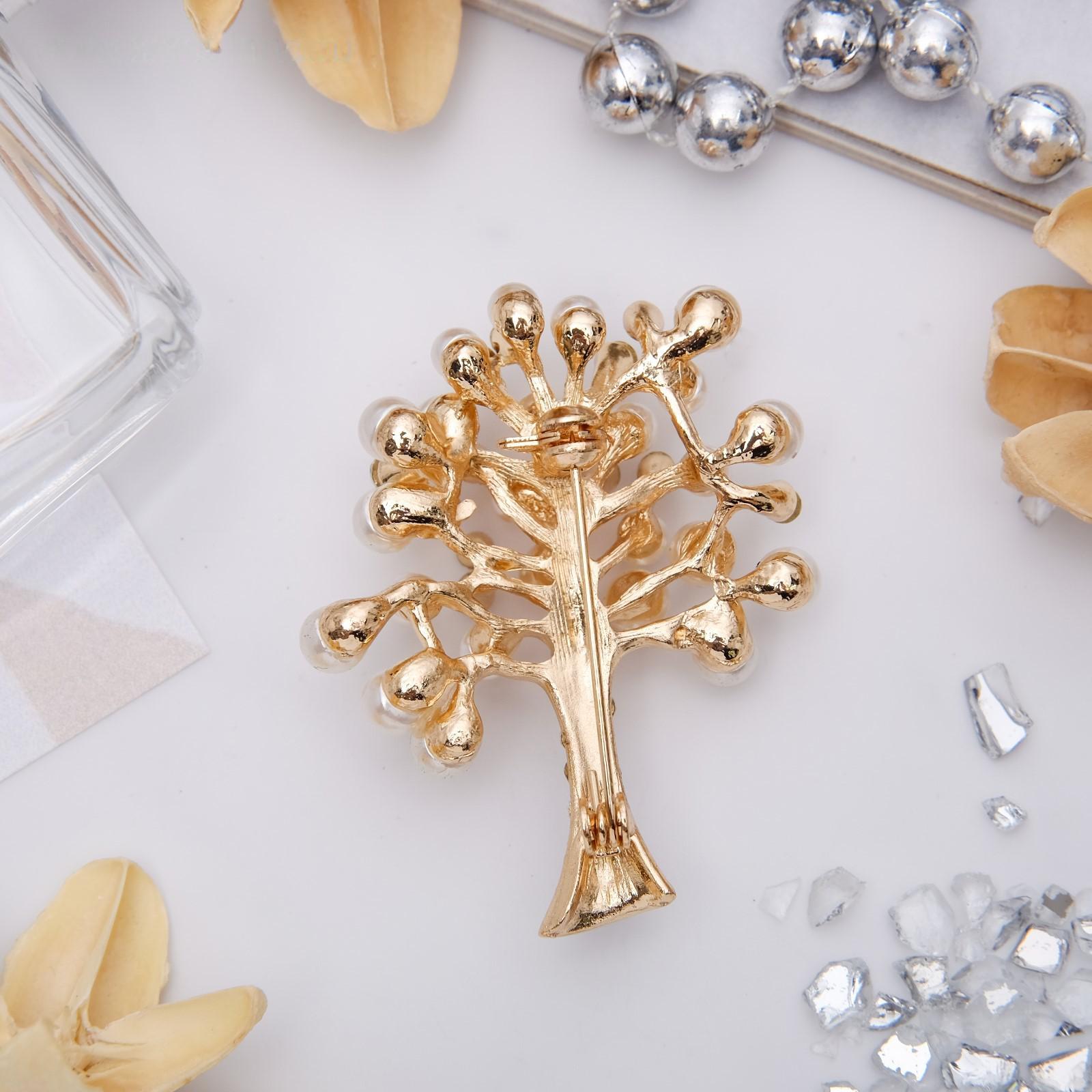 Брошь "Дерево заснеженное" с жемчугом, цвет белый в золоте