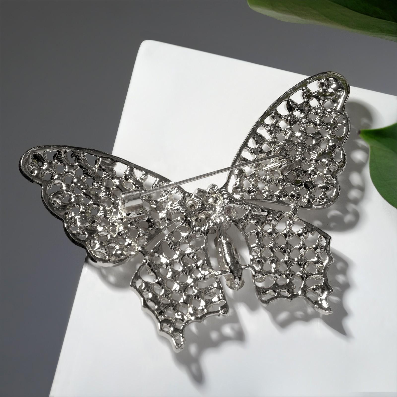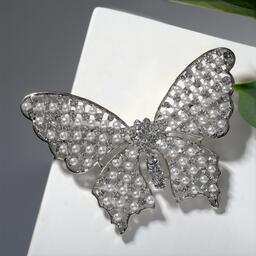 Брошь "Бабочка" жемчужная, цвет белый в серебре