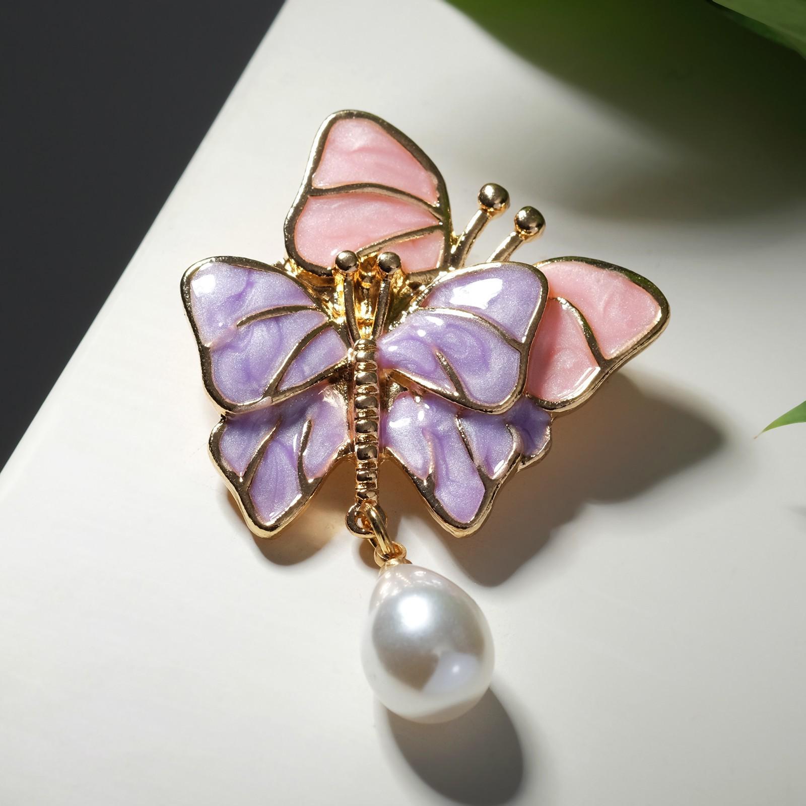 Брошь "Бабочки" пара, цвет сиренево-розовый в золоте