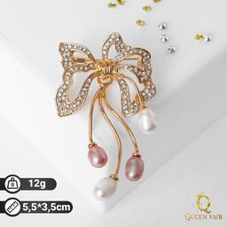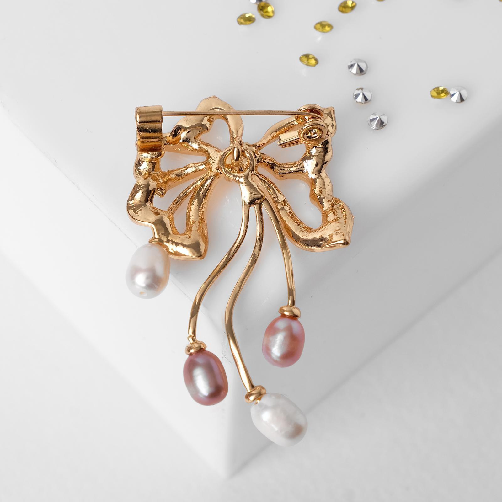 Брошь "Бант" с жемчугом, цвет бело-розовый в золоте