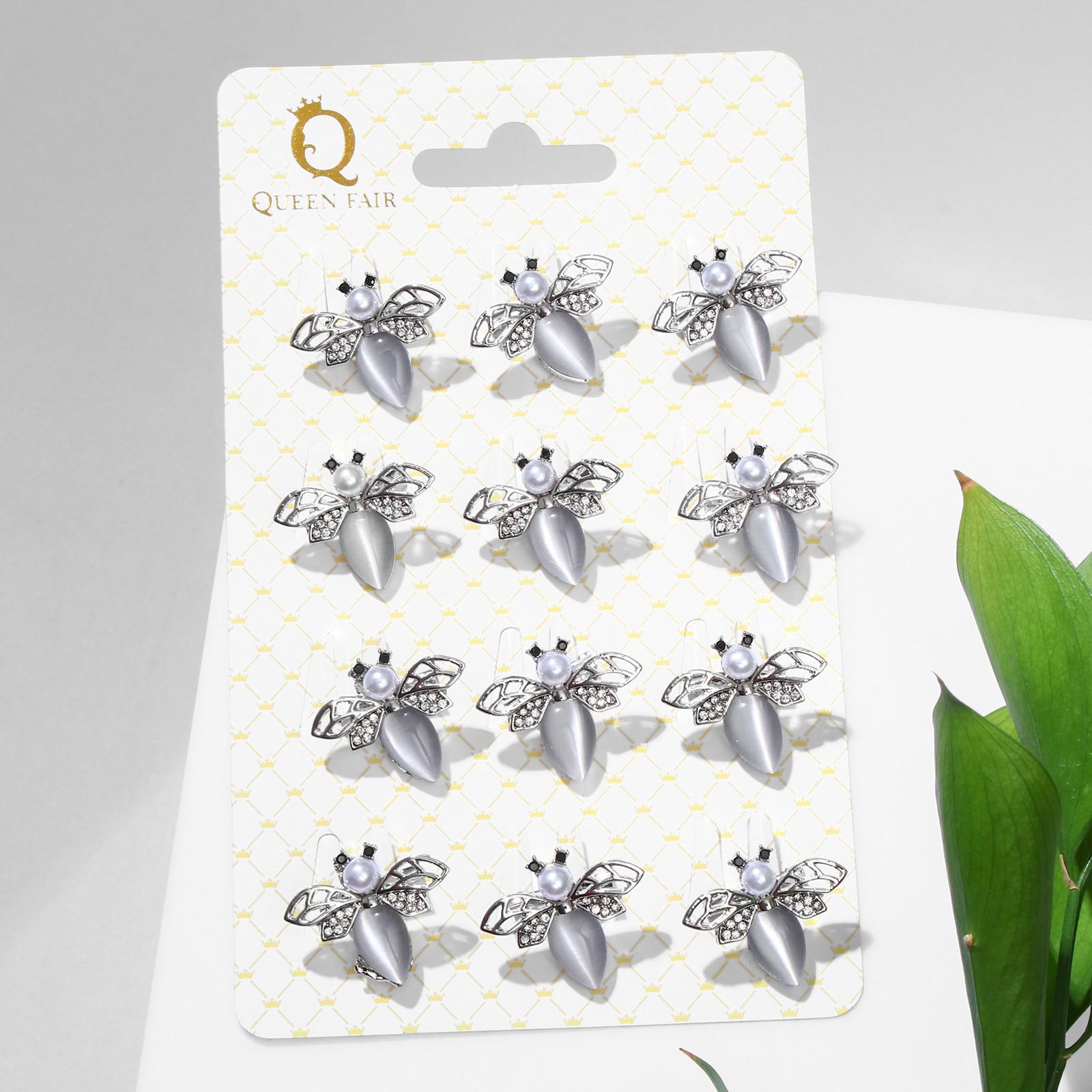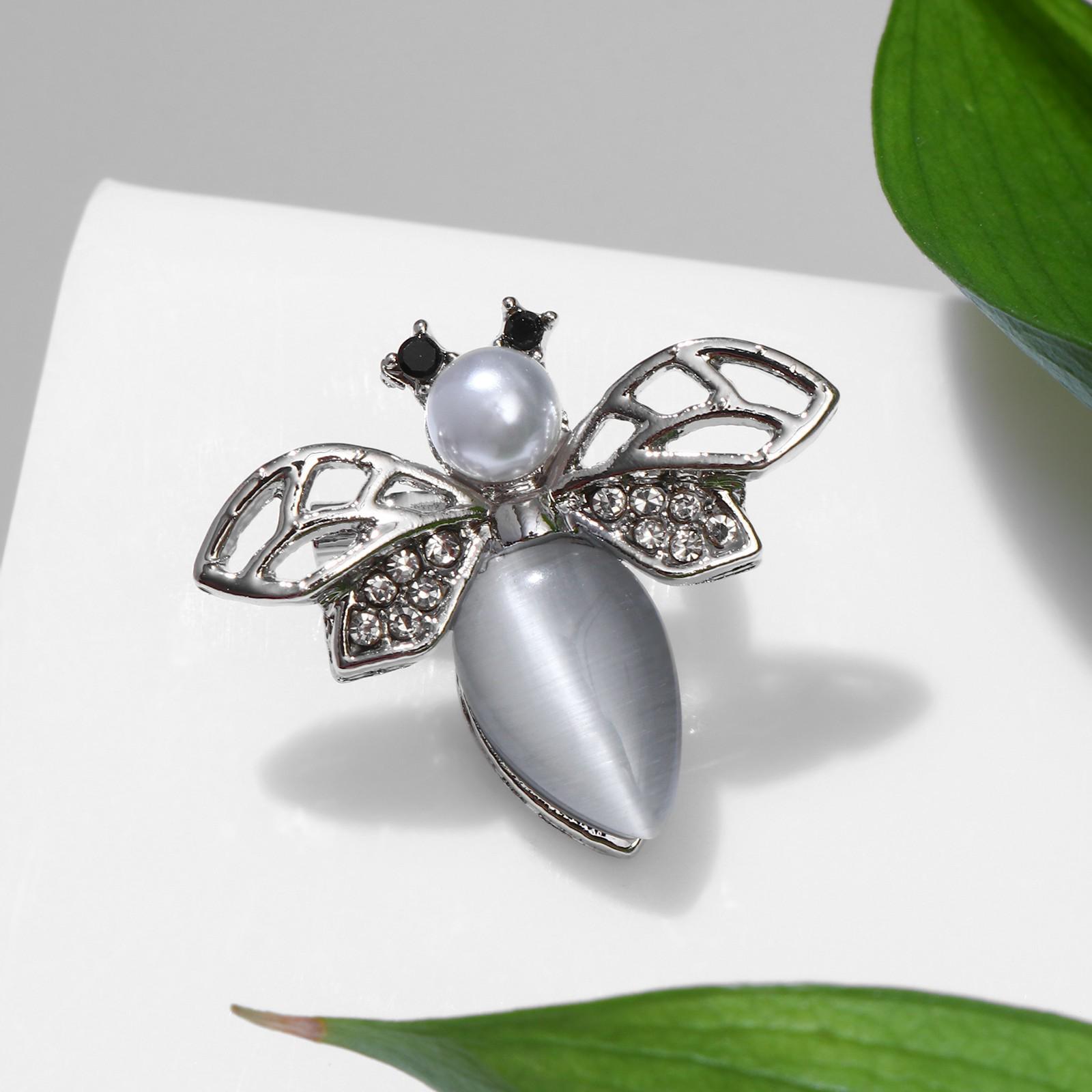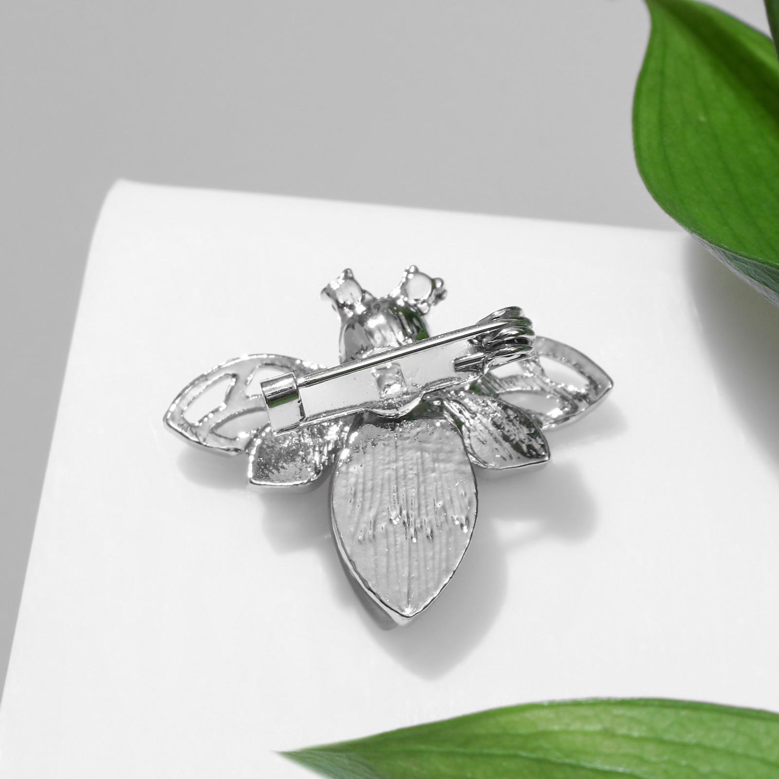 Брошь "Пчела" с ажурными крыльями, цвет белый в серебре (неделимая фас.12шт, цена за шт)