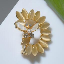 Брошь "Бабочка" изящная, цвет бело-бежевый в золоте