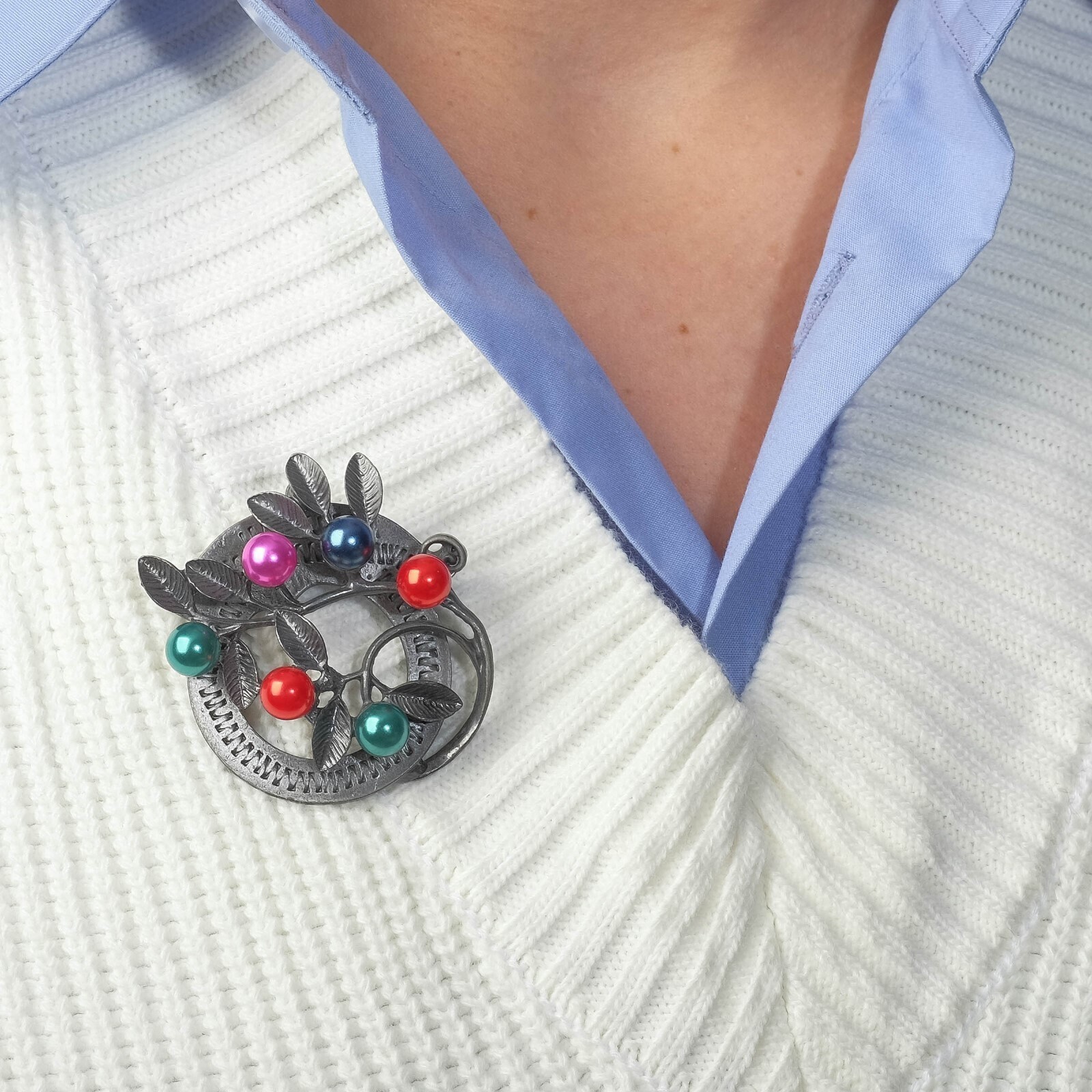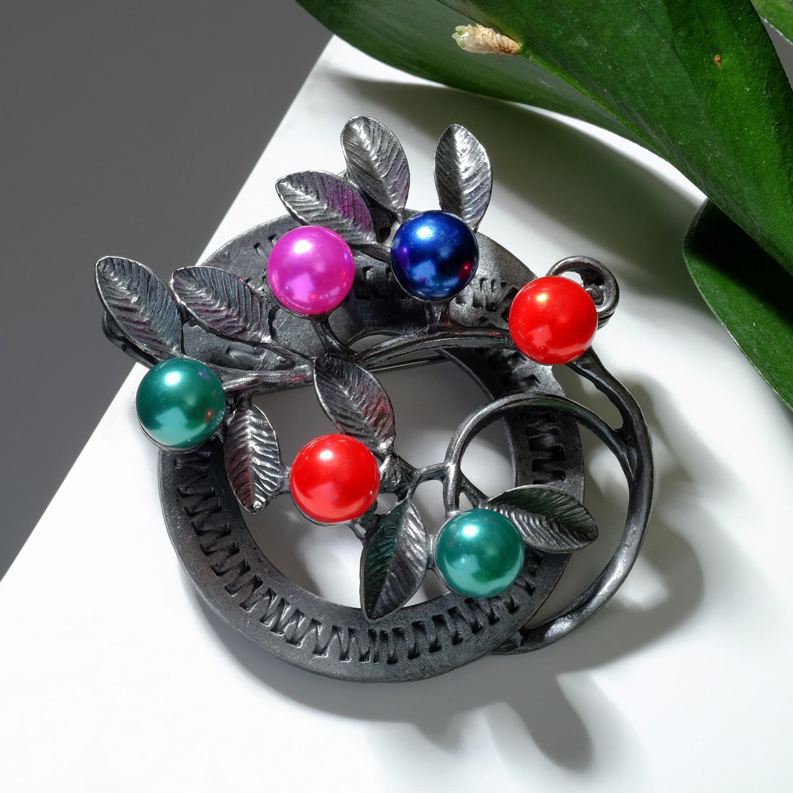 Брошь "Круг" спелые плоды, цветная в чернёном серебре