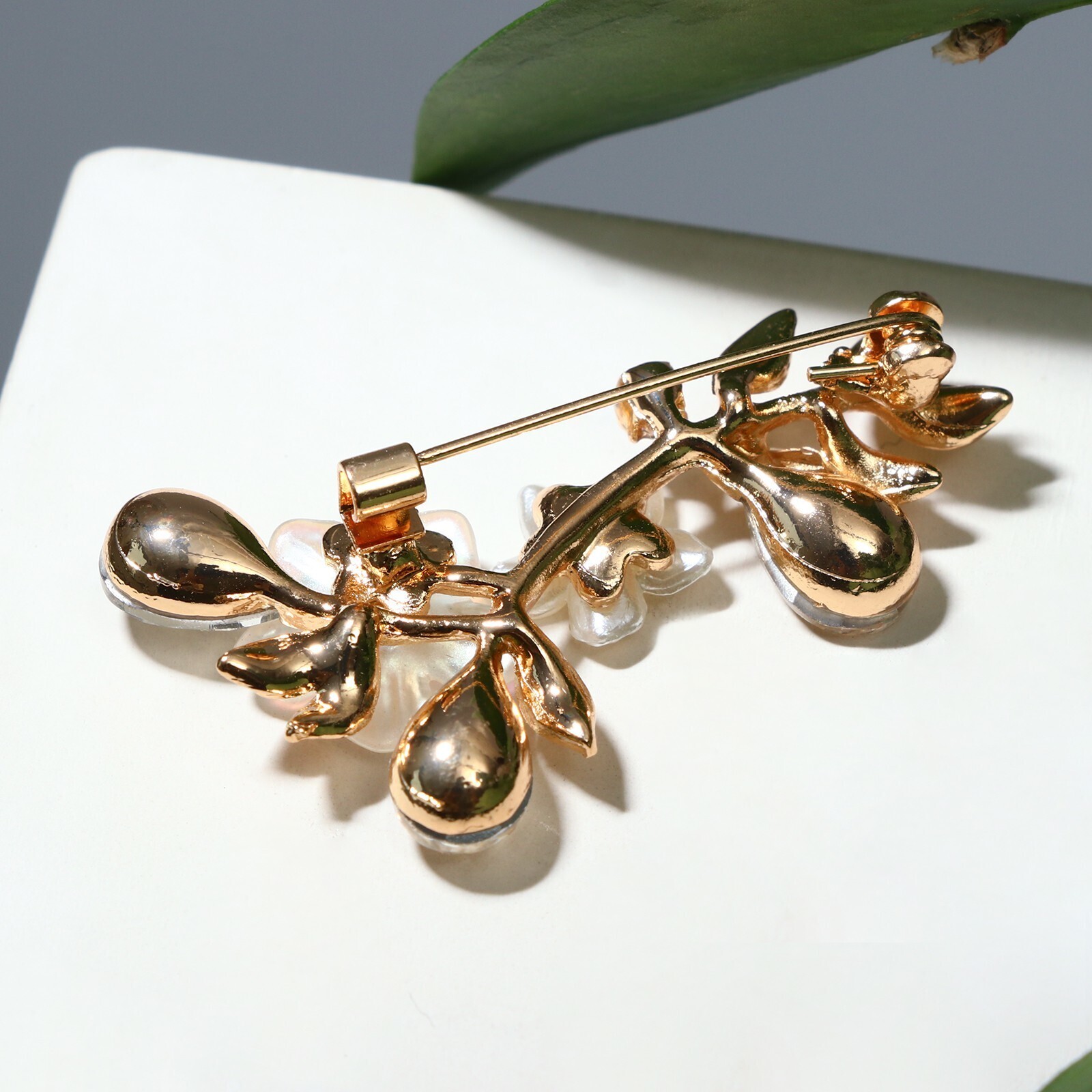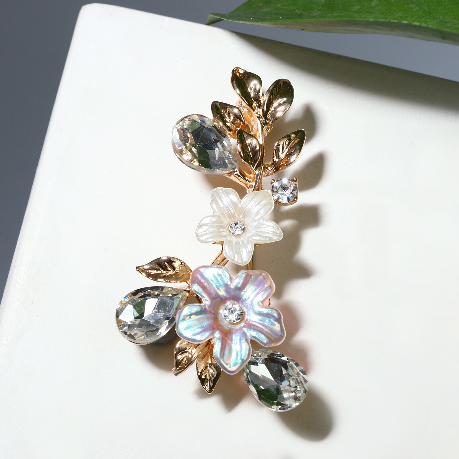 Брошь барокко "Дуэт цветов", цвет белый в золоте