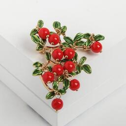 Брошь "Ветвь коралловая", цвет красно-зелёный в золоте