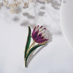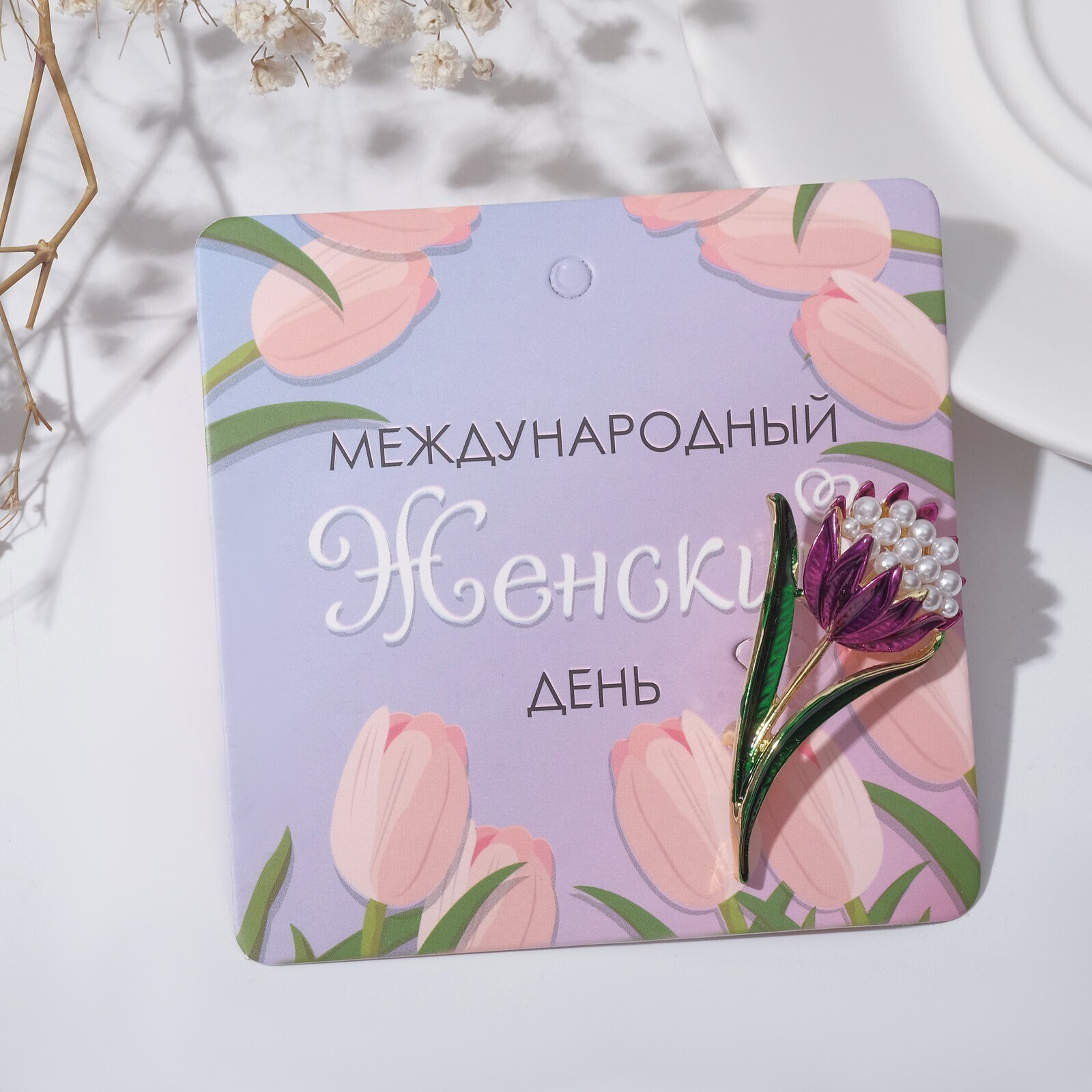 Брошь "8 Марта" тюльпан жемчужный, цветная в золоте