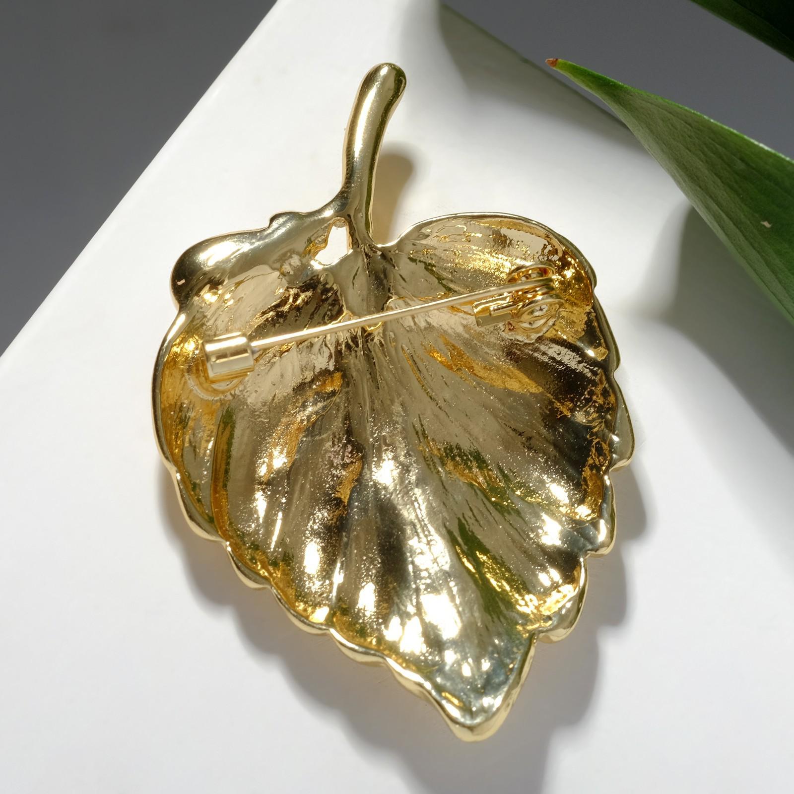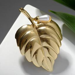 Брошь "Лист" с бусиной, цвет белый в золоте