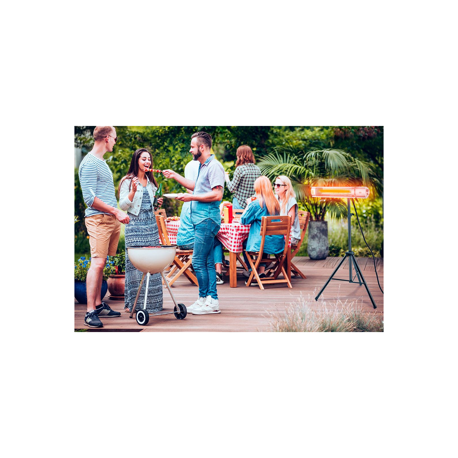 ІЧ-обігрівач 90-030 - це інфрачервоний електроприлад, який перетворює електричну енергію на тепло. Завдяки випромінюваним ІЧ-променям відчувається приємне та здорове тепло, ніби під час перебування на сонці. Обігрівач досягає повної потужності нагріву відразу після включення. Завдяки класу захисту IP65 він стійкий до несприятливих погодних умов та може використовуватись як на відкритому повітрі, так і у приміщенні.