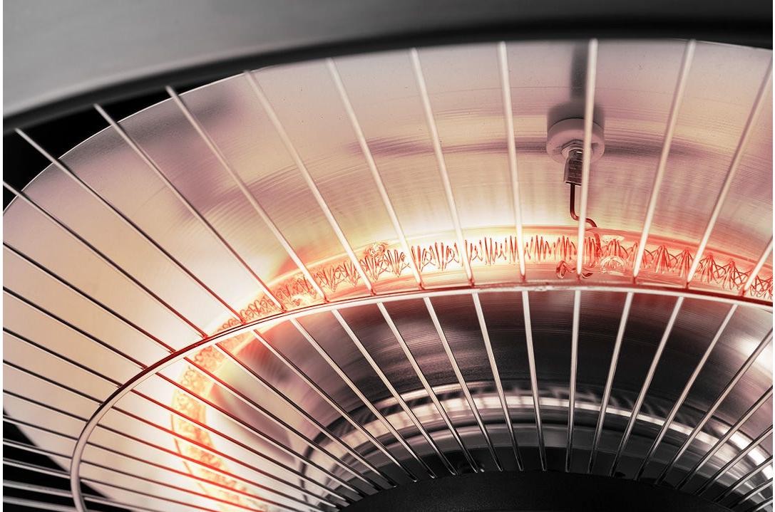Обігрівач має нагрівальний елемент із високоякісних галогенних ламп. Його світловий час оцінюється до 6000 год. Легкий алюмінієвий корпус має захист від вологи, дощу та несприятливих погодних умов (IP44), що дозволяє використовувати його як у приміщенні, так і на вулиці.