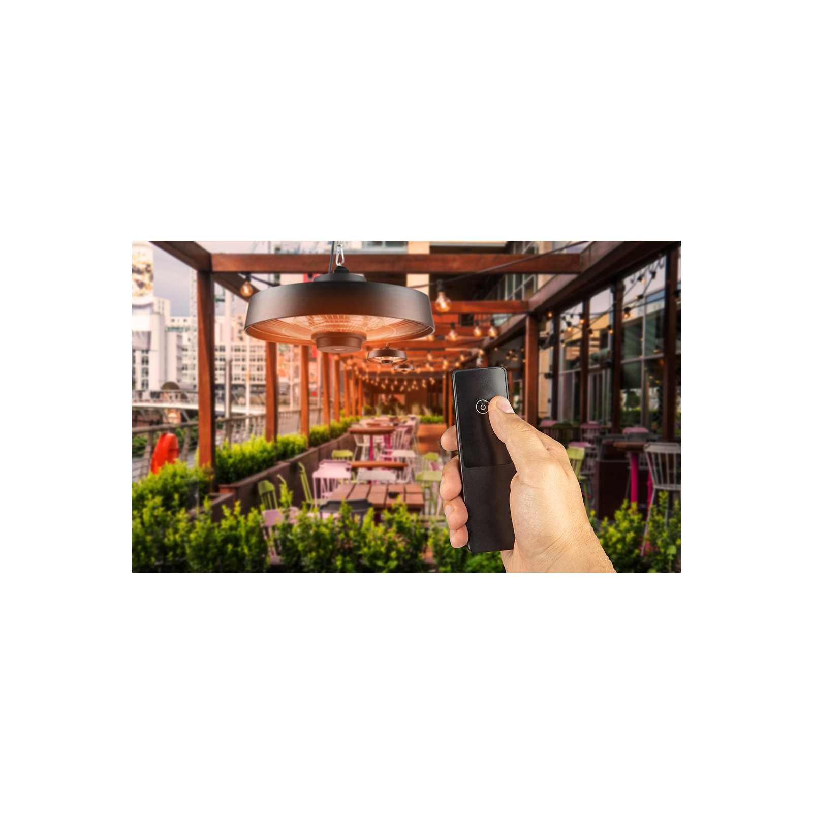 Універсальний обігрівач стель потужністю 2000 Вт - це сучасний інфрачервоний обігрівач. Для ефективного обігріву будинків, офісів та будь-яких підсобних чи житлових приміщень – для внутрішніх та зовнішніх робіт. Так само і для використання у саду, на терасі, на вулиці у кафе. Розміщення на висоті максимум 5м.