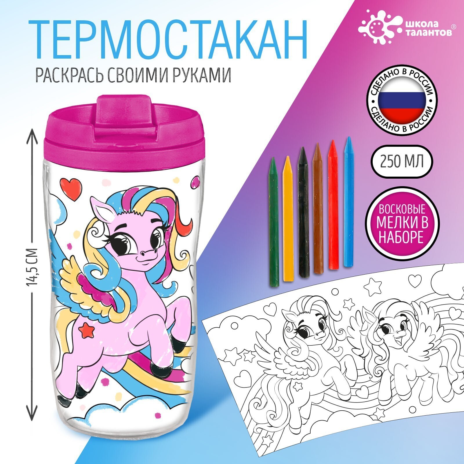 Термостакан раскраска «Милые Пони», цвет ярко-розовый