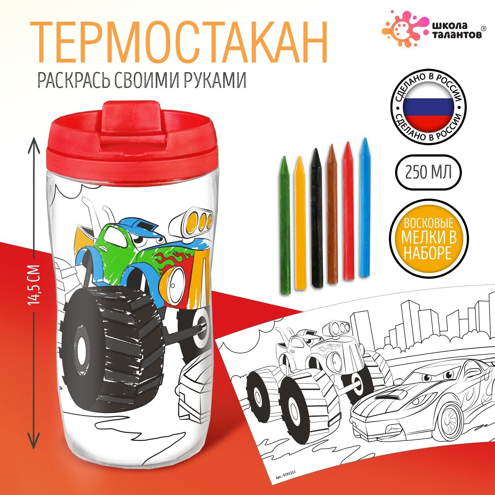 Термостакан раскраска «Крутые гонки», цвет ярко-красный