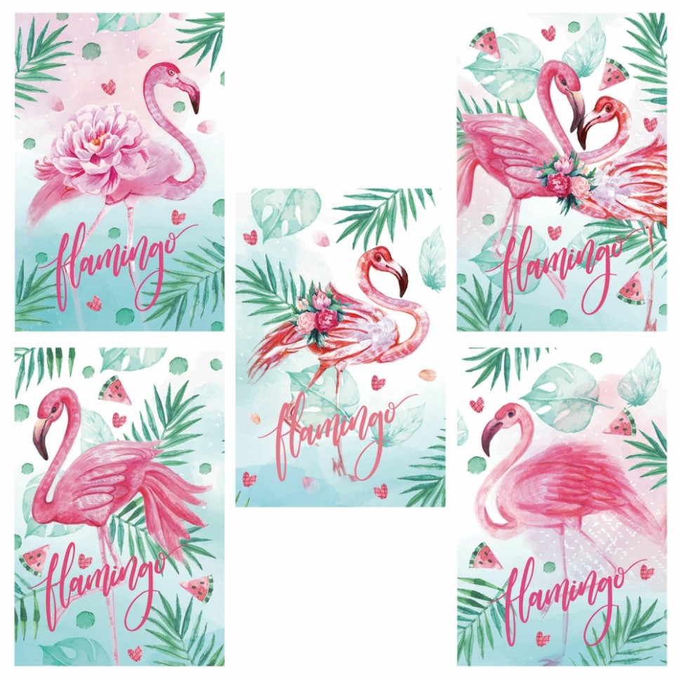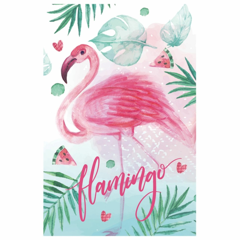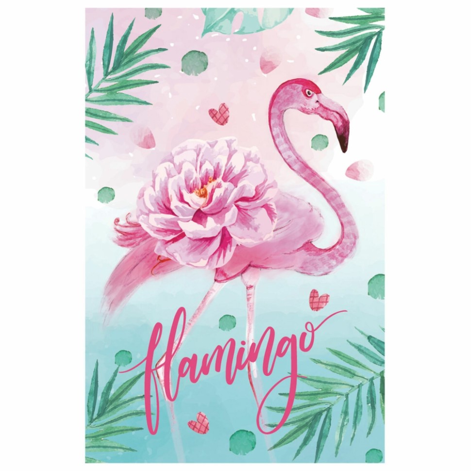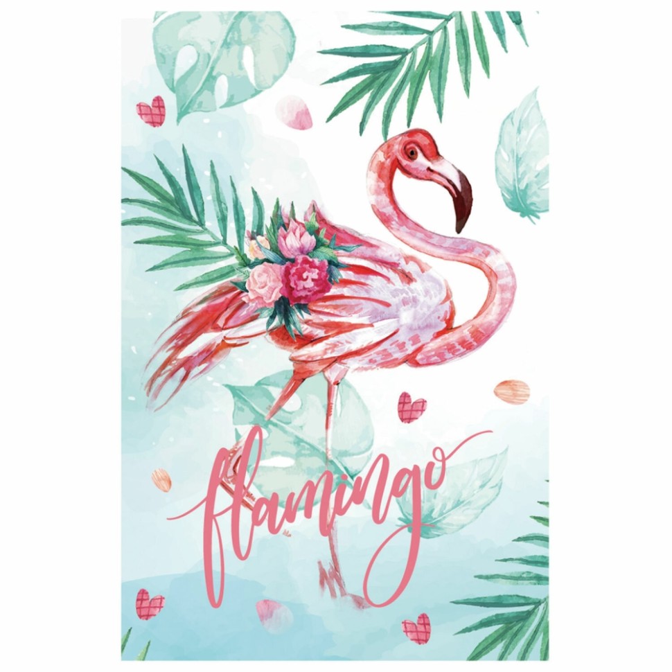 Блокнот МАЛЫЙ ФОРМАТ (65х100 мм) А7, 48 л., склейка, цветной блок, клетка, HATBER, "Фламинго", 48Б7В1к