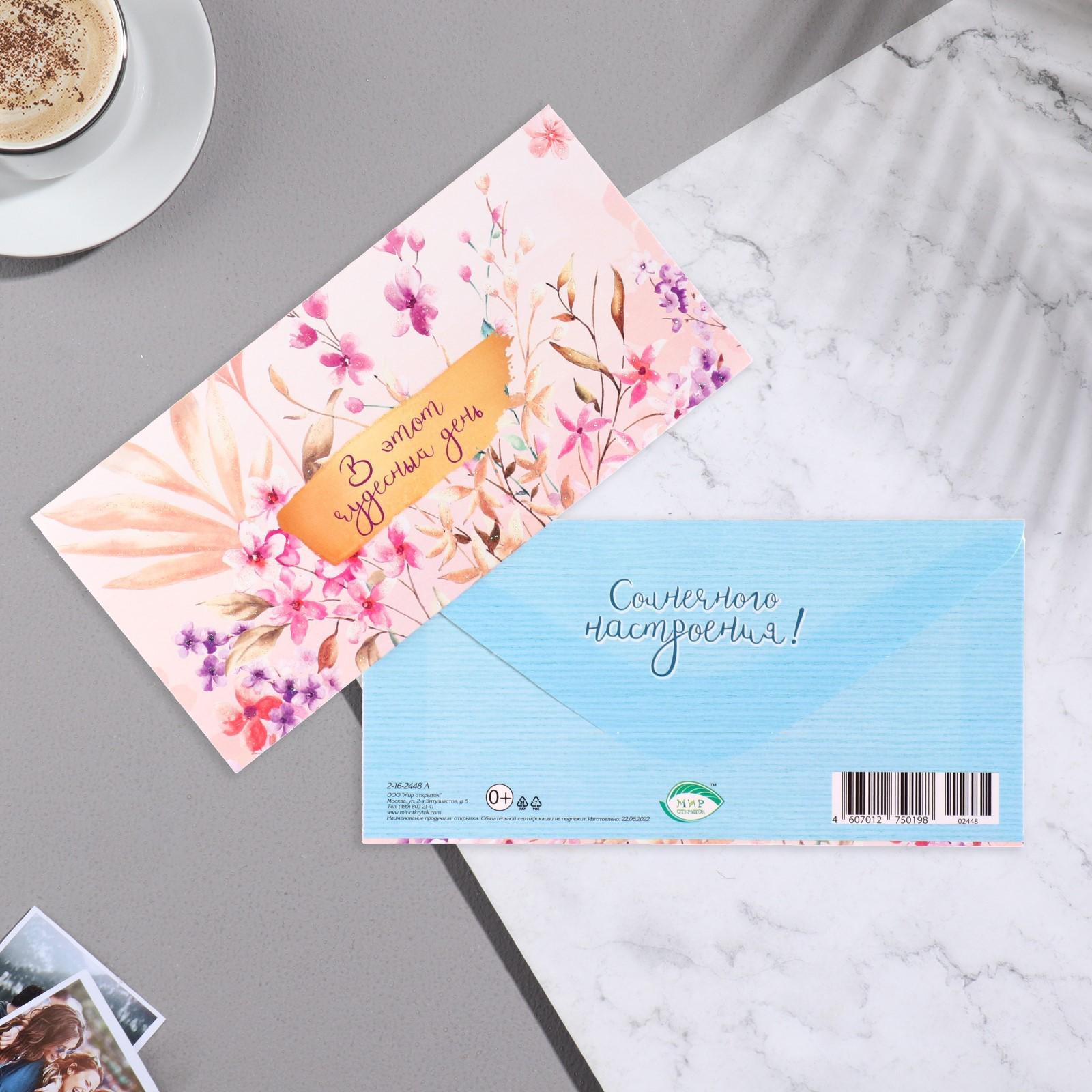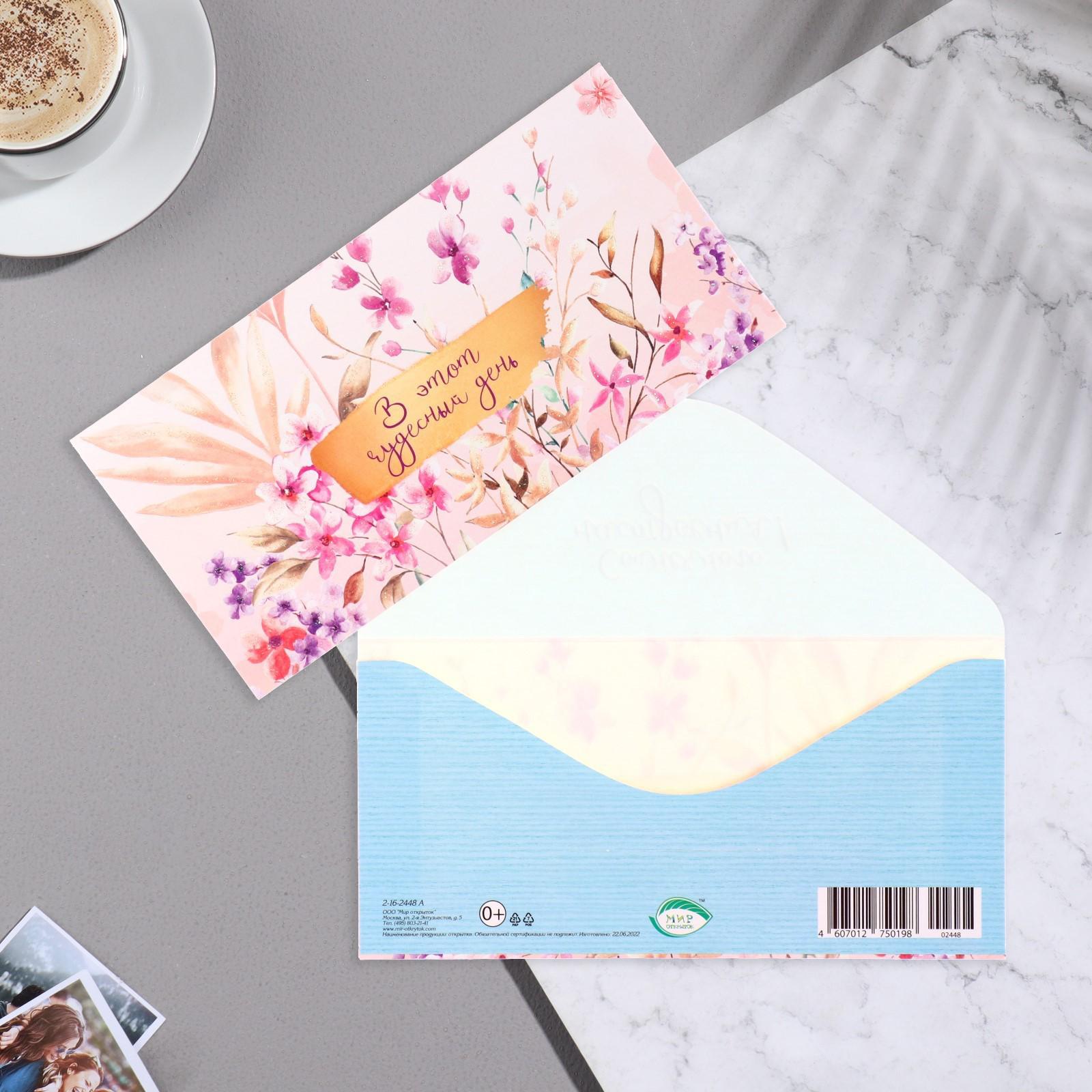 Конвет для денег "В этот чудесный день!" нежный фон, цветы, 17х8 см