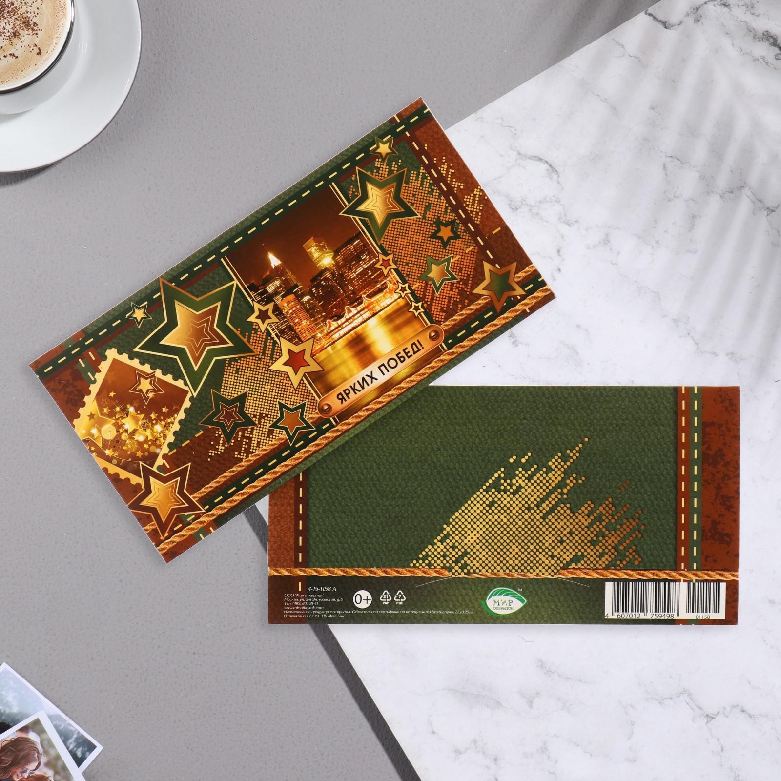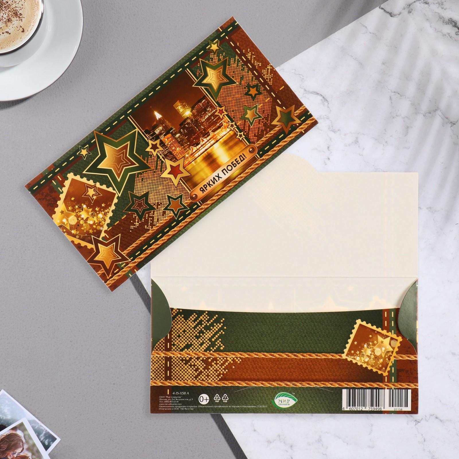 Конверт для денег "Ярких побед!" звезды, 16,8х8,3 см