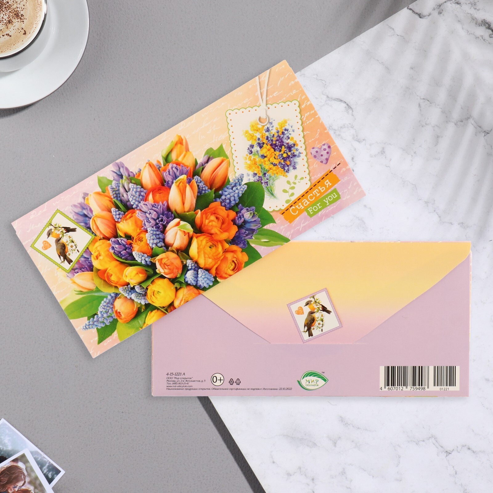 Конверт для денег "Счастья тебе!" букет, 16,8х8,3 см
