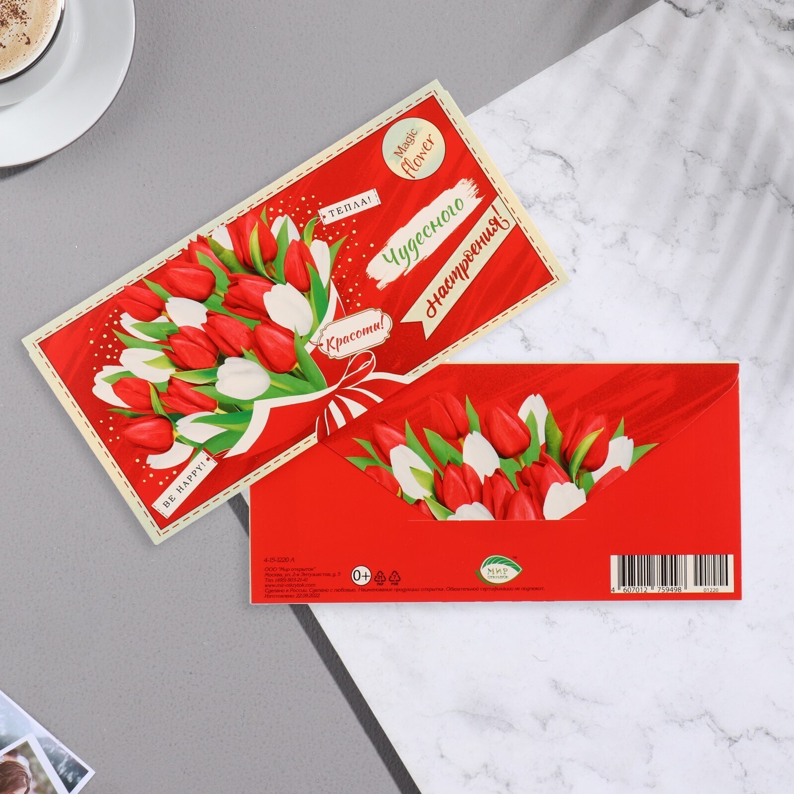 Конверт для денег "Чудесного дня!" тюльпаны, 16,8х8,3 см