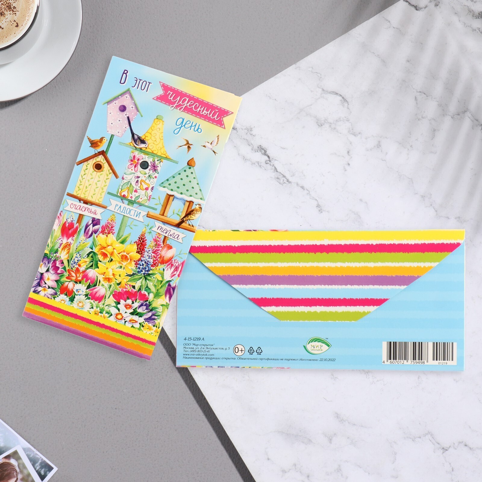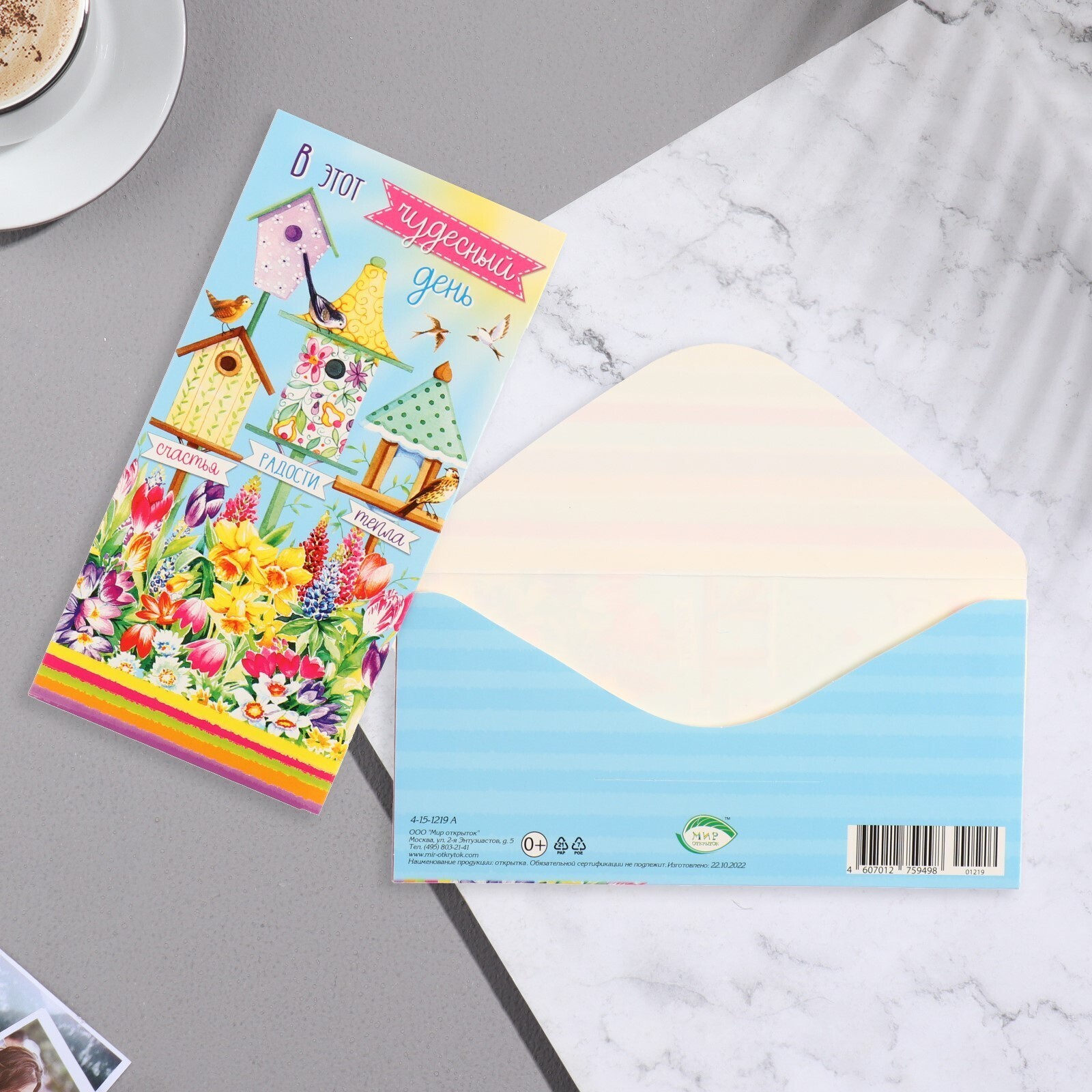 Конверт для денег "В этот чудесный день!" скворечник, 16,8х8,3 см