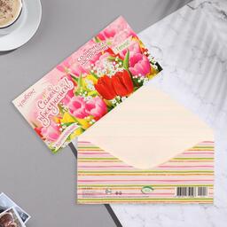 Конверт для денег "Самой прекрасной" тюльпаны, 16,8х8,3 см