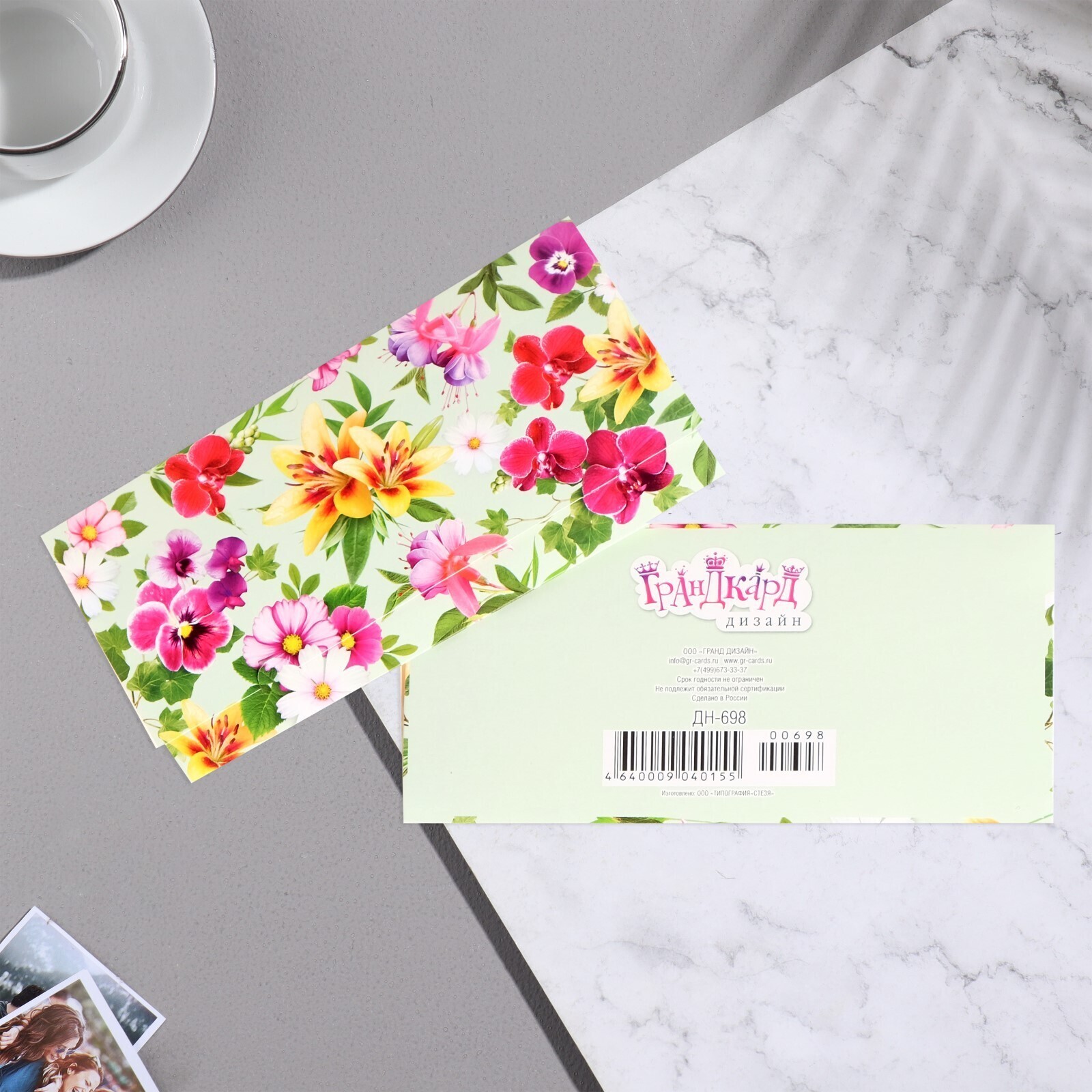 Конверт для денег "Универсальный" без надписи, цветы, зеленый фон
