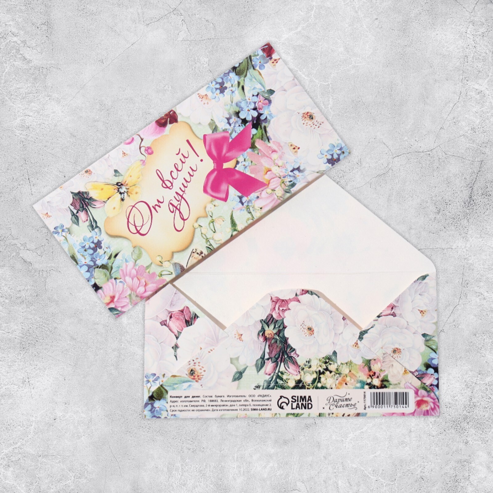 Конверт для денег «От всей души», нежные цветы, 16,5 × 8 см