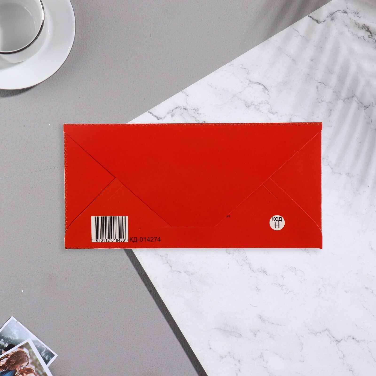 Конверт для денег "Универсальный" тиснение, узоры, красный фон