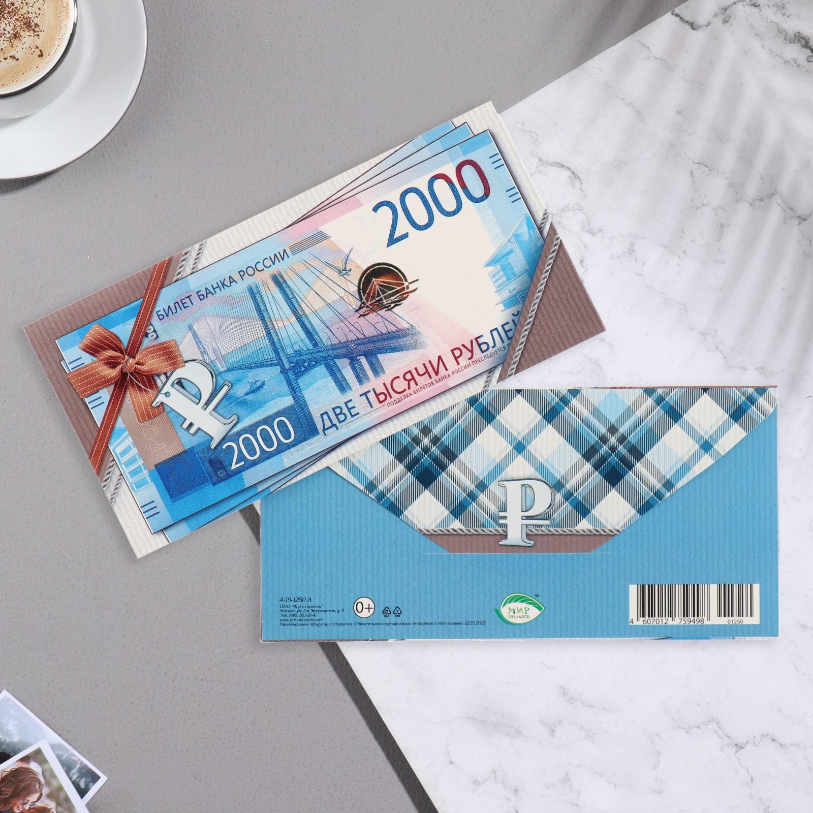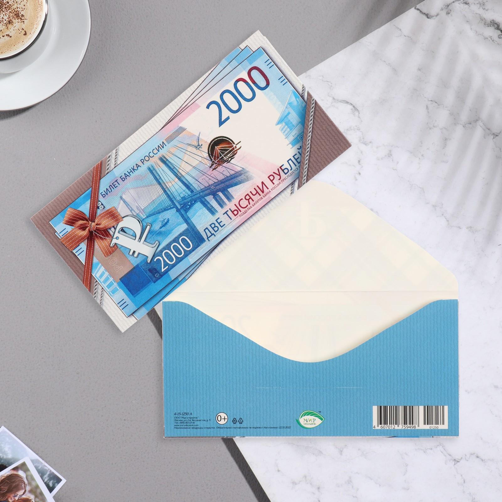 Конверт для денег "Купюра" две тысячи, 16,8х8,3 см