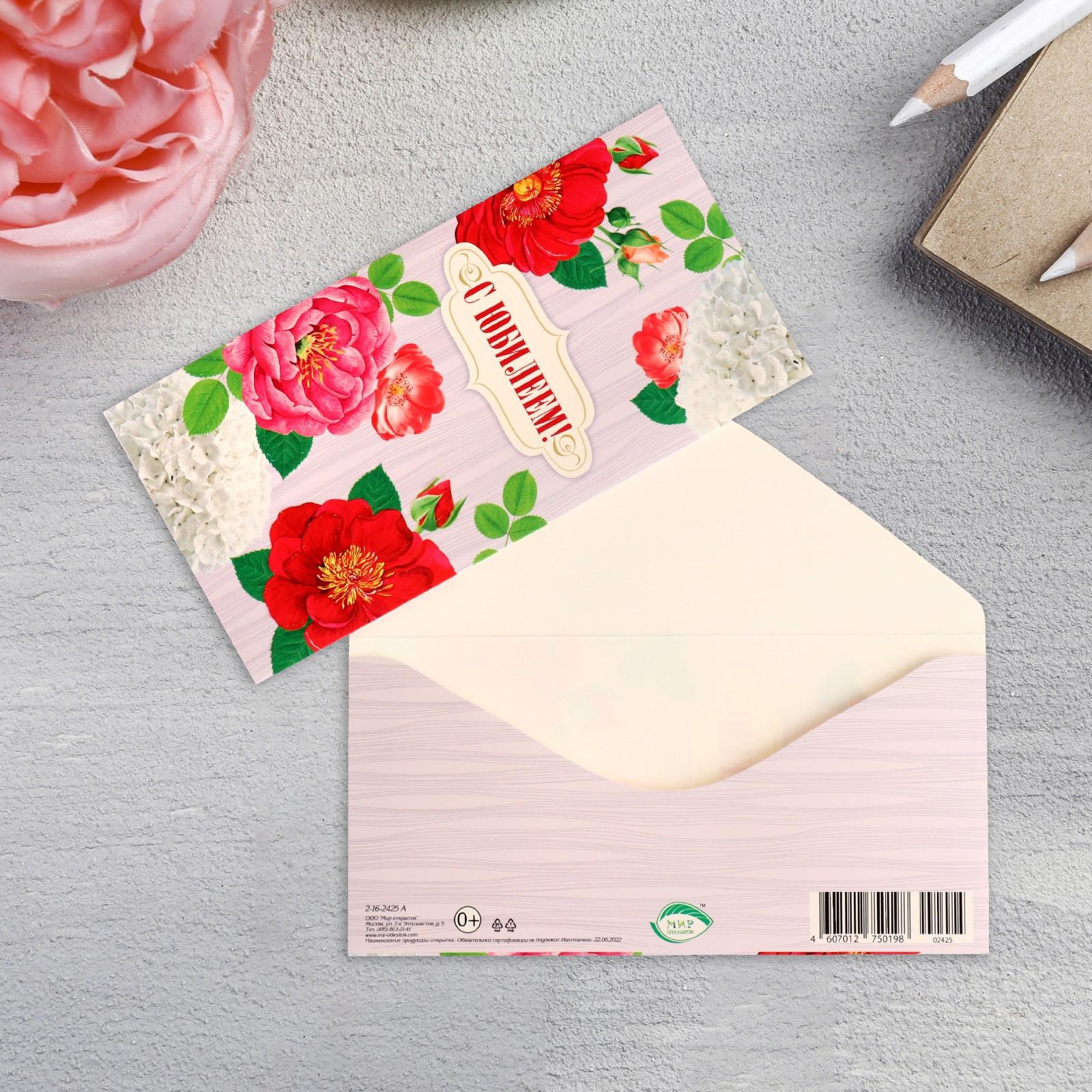 Конверт для денег "С Юбилеем!" цветы, маки, 17х8,3 см