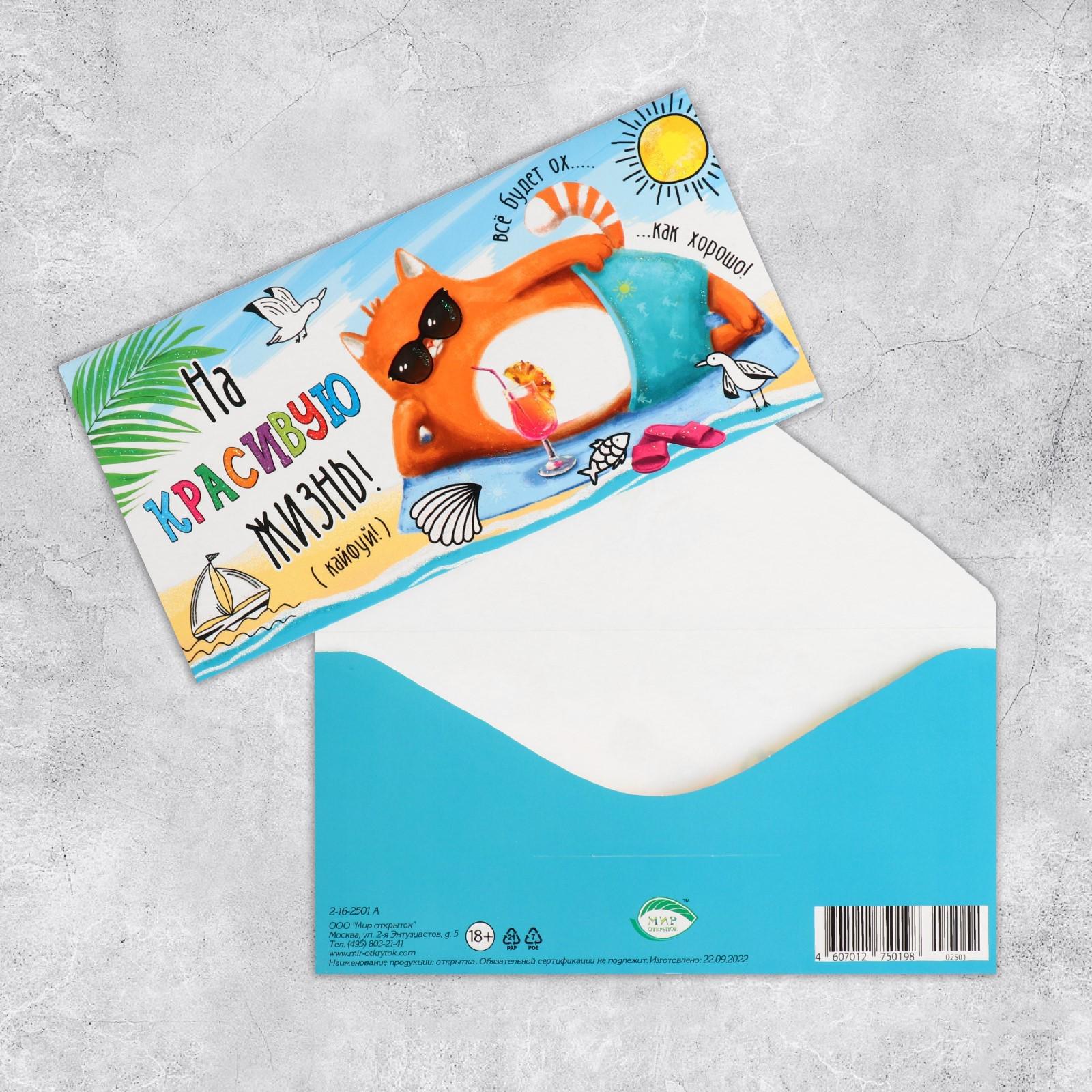 Конверт для денег "На красивую жизнь!" глиттер, 17х8,3 см