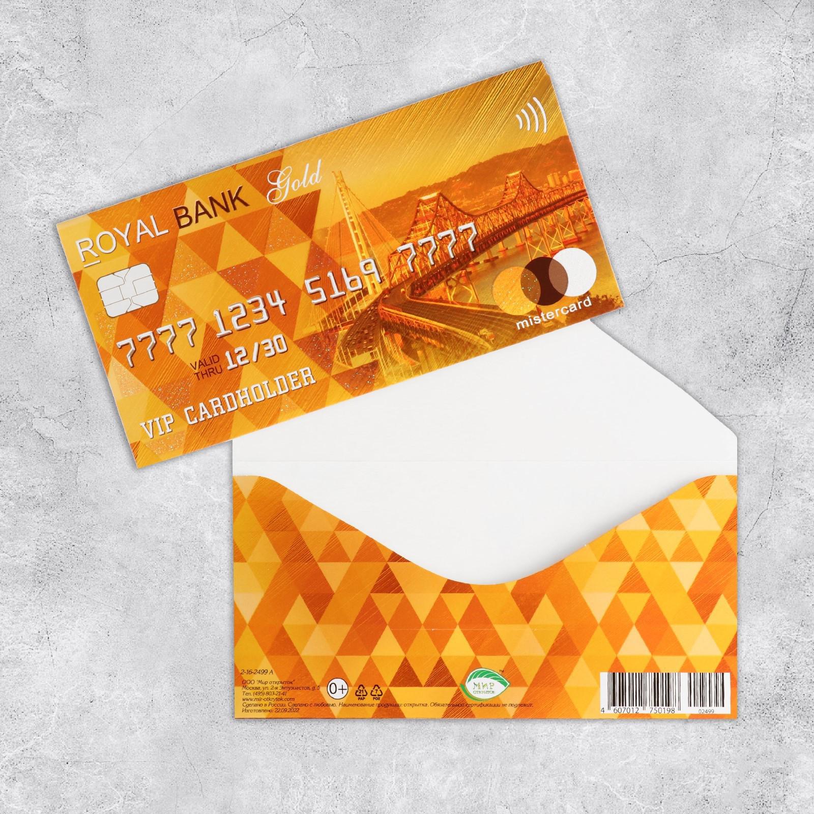 Конверт для денег "Золотая карта" глиттер, 17х8,3 см