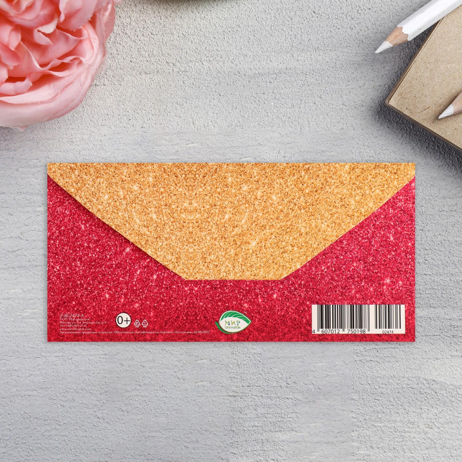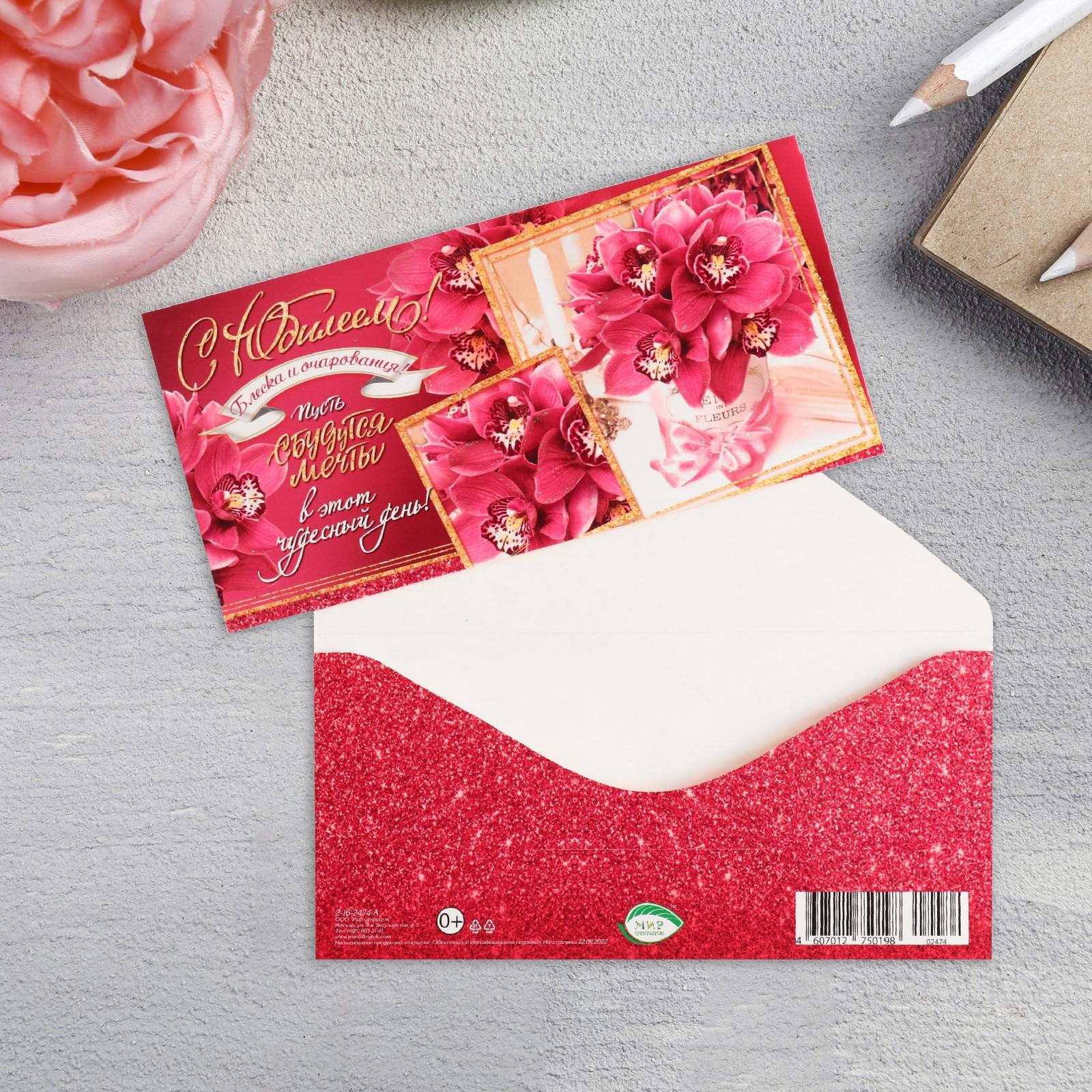 Конверт для денег "С Юбилеем!" глиттер, цветы 17х8,3 см