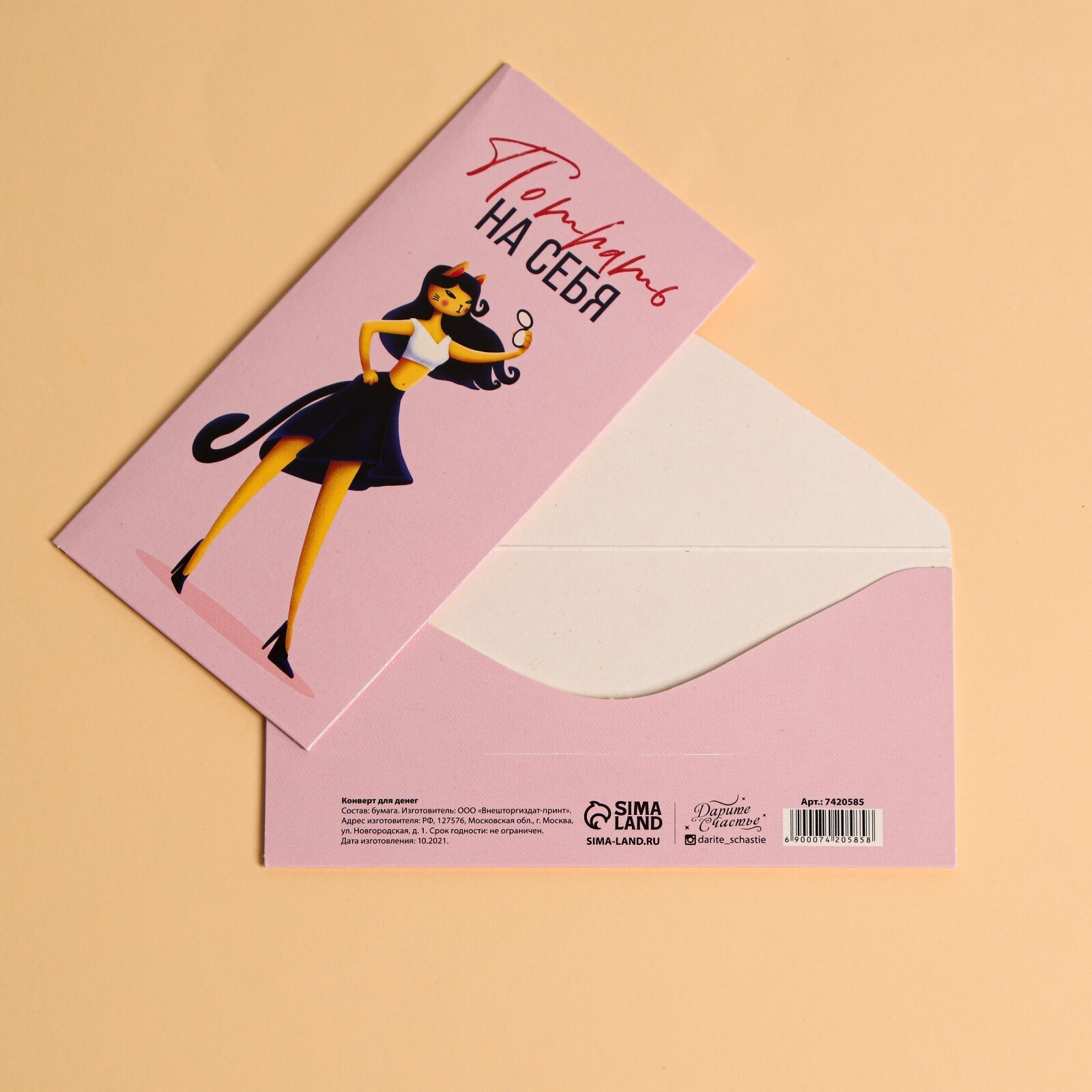 Конверт для денег «Потрать на себя», кошка, 16,5 × 8 см