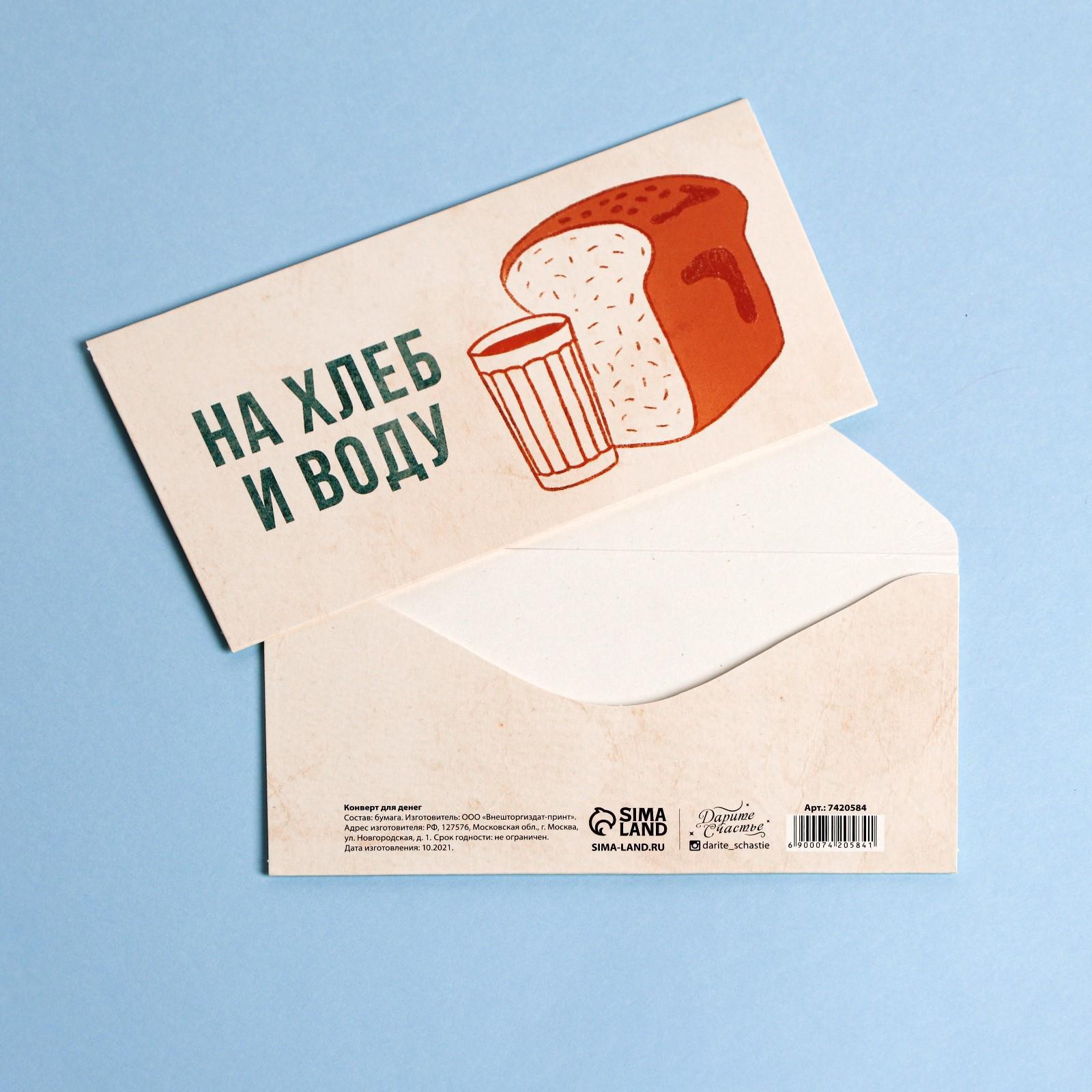 Конверт для денег «На хлеб и воду», 16,5 × 8 см