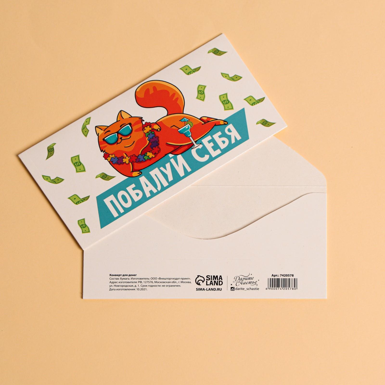 Конверт для денег «Побалуй себя», кот, 16,5 × 8 см