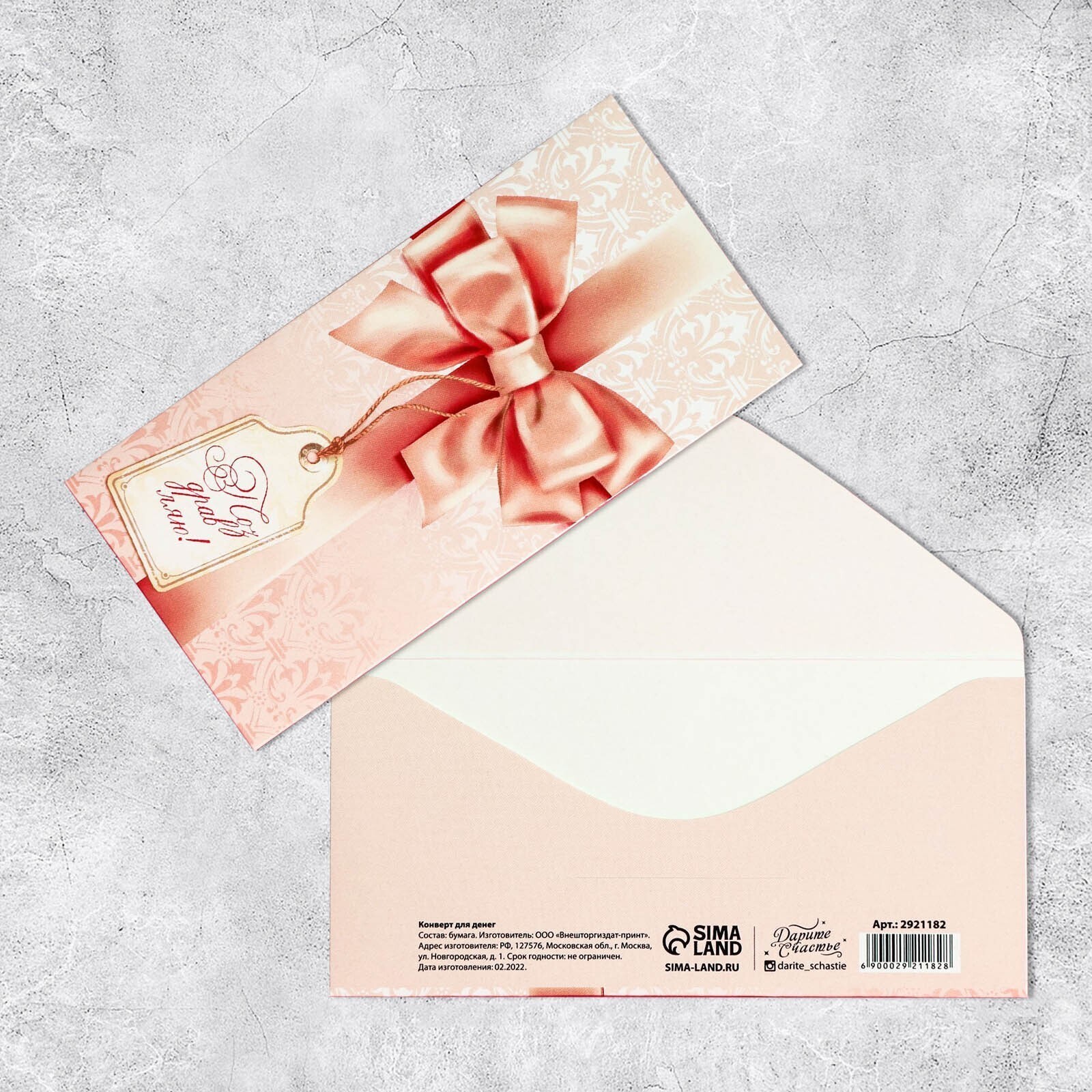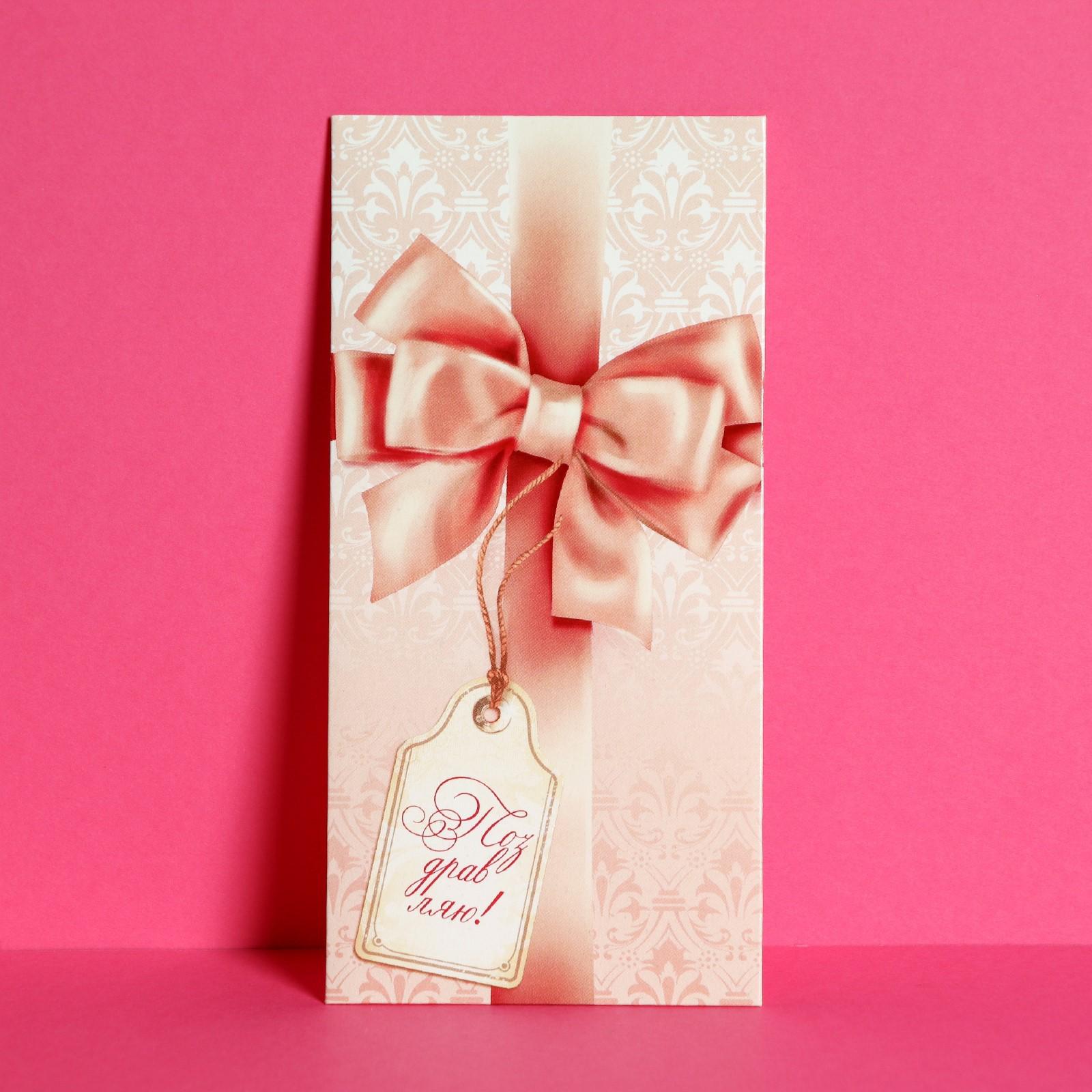 Конверт для денег "С бантом" 16,5 х 8 см