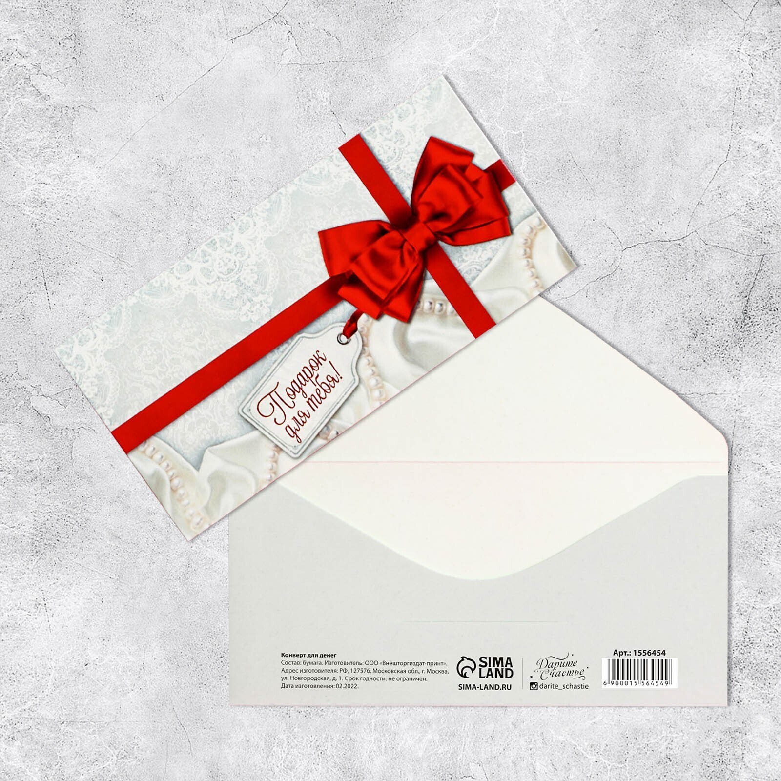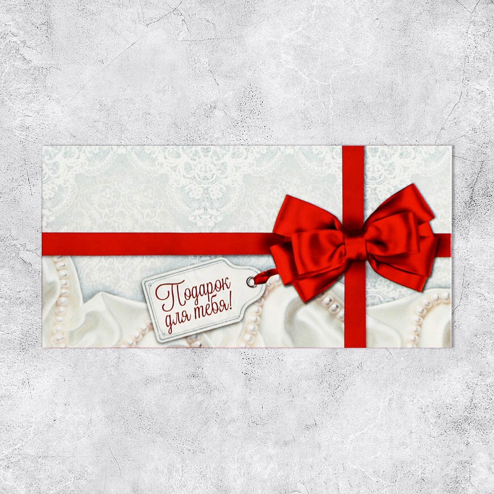 Конверт для денег "Подарок для тебя" белый фон, 16,5 х 8 см