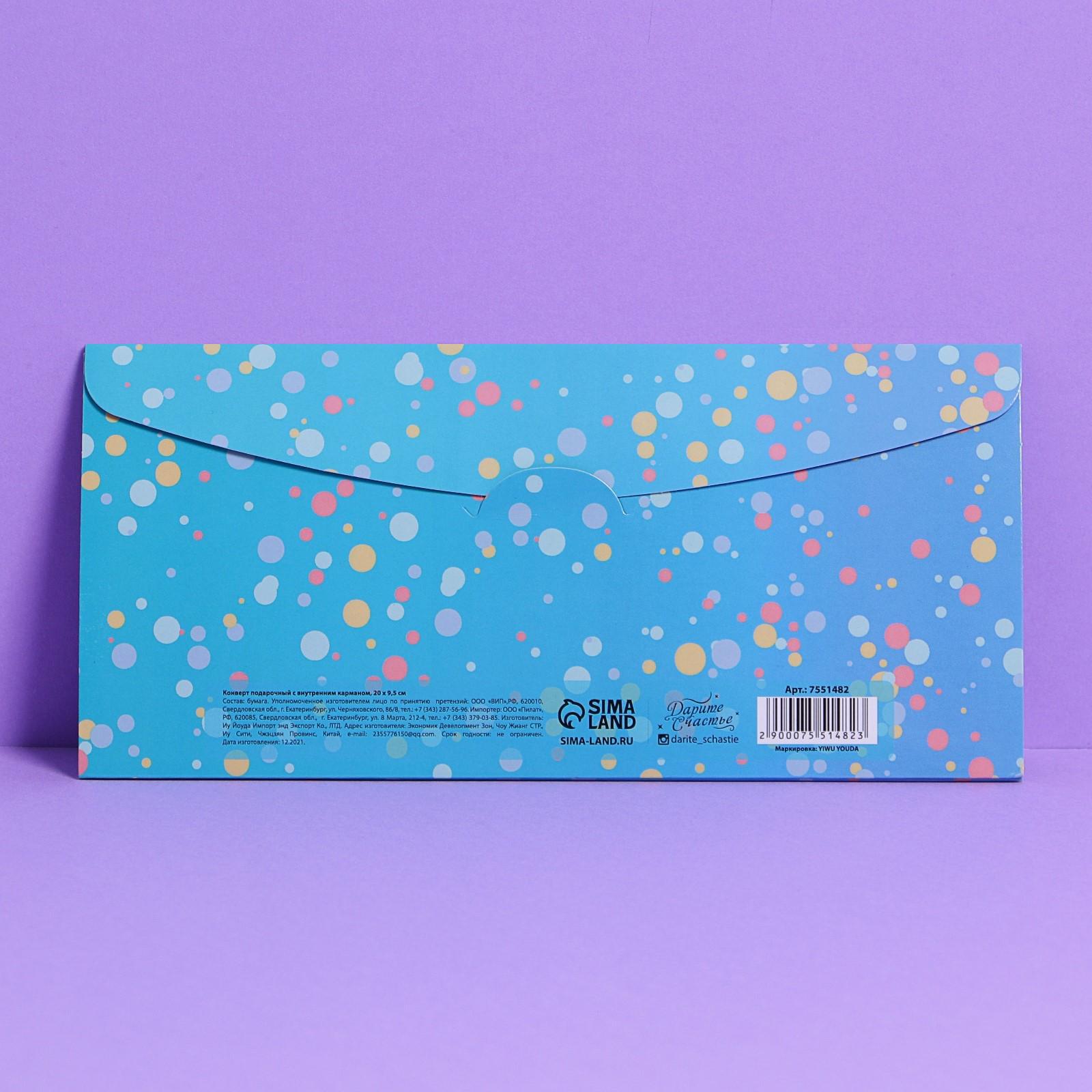 Конверт подарочный с внутренним карманом «День рождения», 20 × 9,5 см