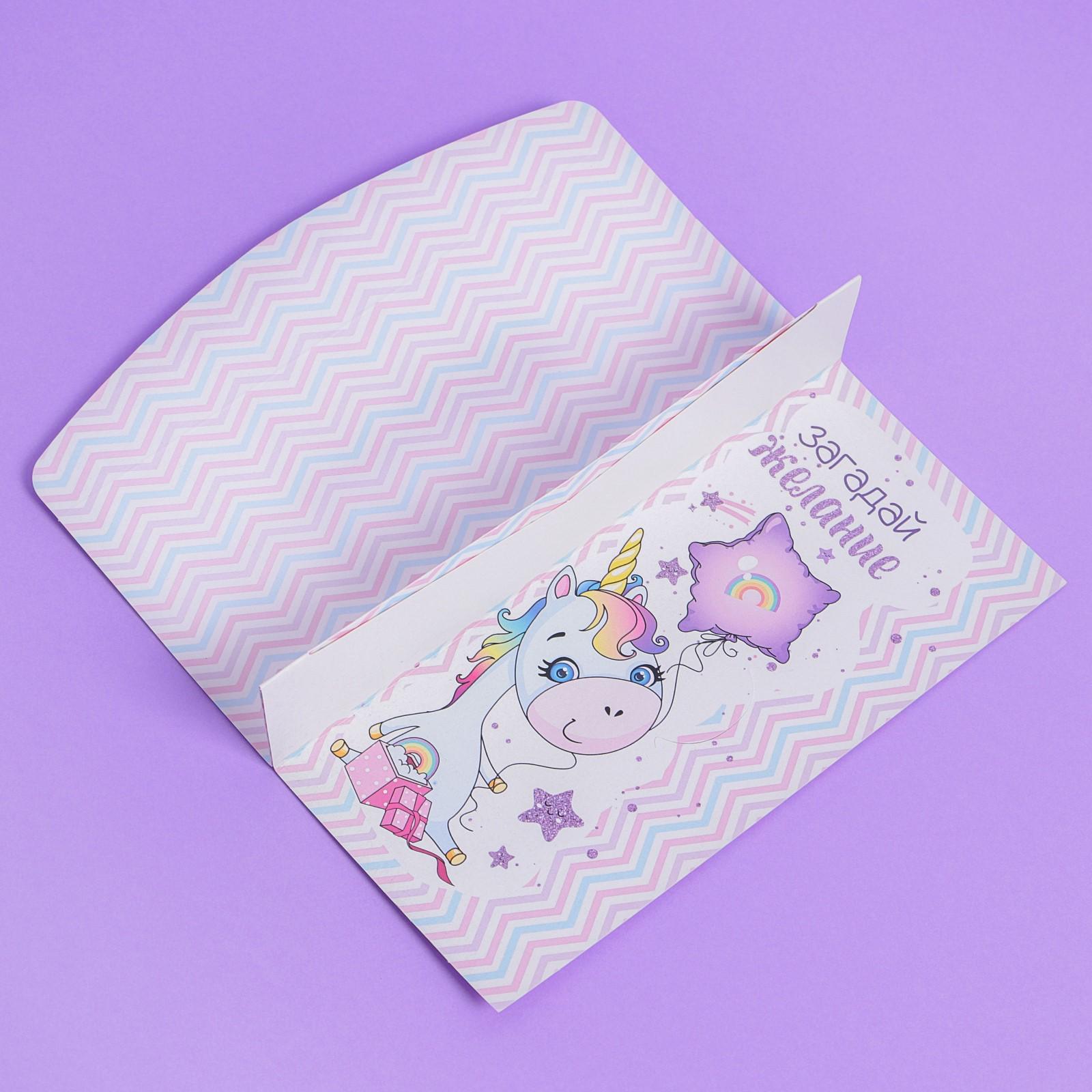 Конверт подарочный с внутренним карманом «Единорог», 20 × 9,5 см