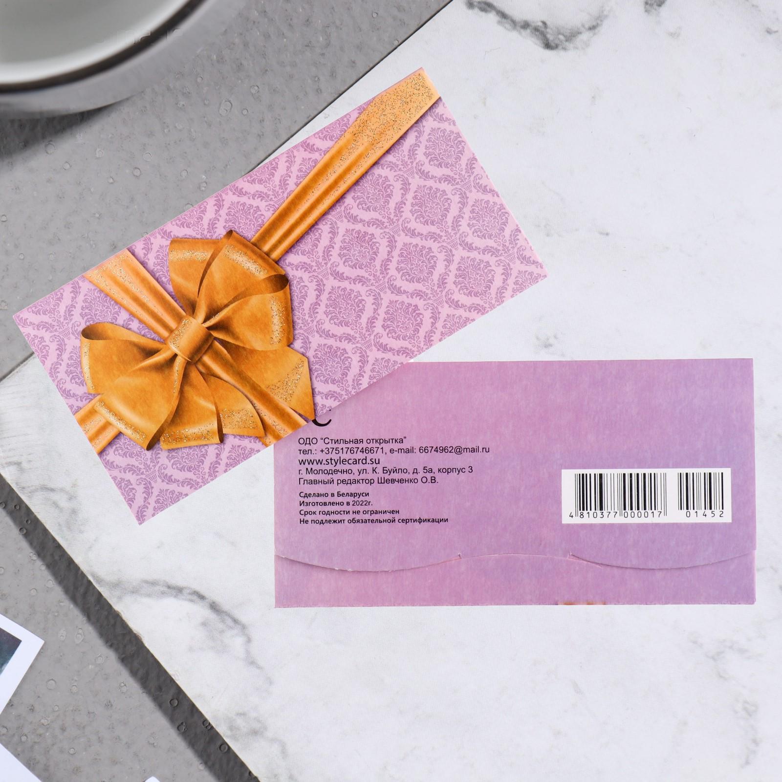 Открытка-конверт для денег "Бант" фиолетовый фон