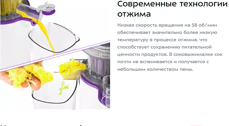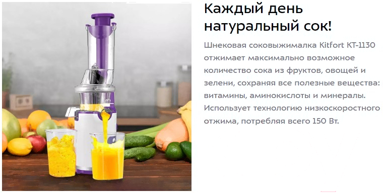 Соковыжималка электрическая Kitfort KT-1130-1 (белый/фиолетовый)