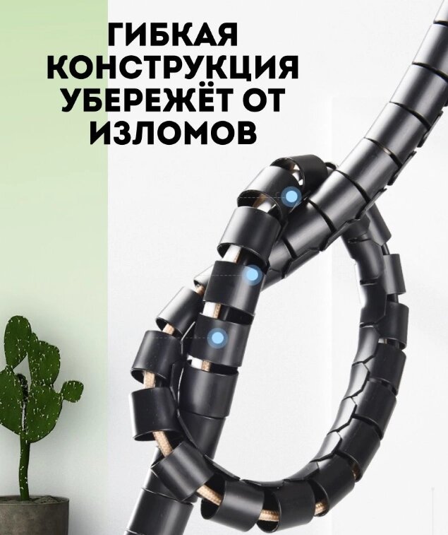 Кабельный органайзер / оплетка - держатель для крепления / защиты проводов, 2 метра, черный